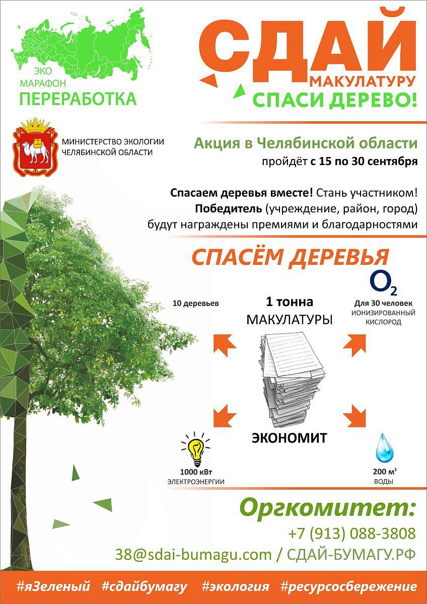 Всероссийский эко-марафон «Переработка» осенью 2025 года в Челябинской области планирует проведение акции под девизом: «Zдай бумагу – помоги СВОим», который проводится при поддержке краудфандинг проекта «Подари Дерево» www.подари-дерево.рф.