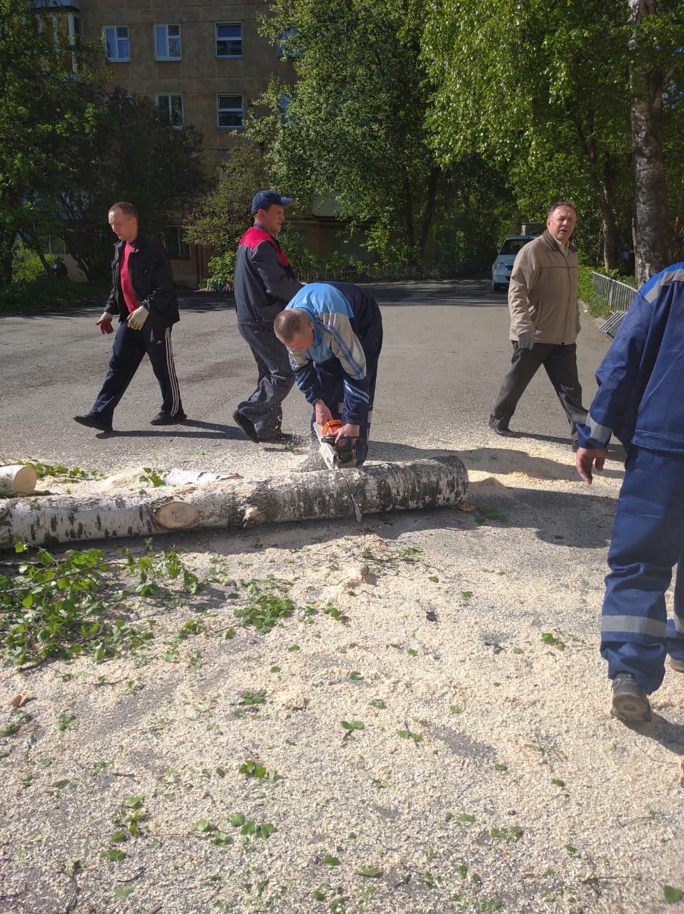 На прошлой неделе, 22 мая, было получено разрешение на спил четырех высоко растущих деревьев возле детской поликлиники района Северо-Запада. За 3 часа необходимые работы были выполнены. Попутно, выполняя просьбу главного врача Натальи Ахтарьяновой, бы срезали несколько старых, больных кустов, затеняющих окна медицинского учреждения. Срезанные пеньки и ветки оперативно вывезли, а прилегающую территорию привели в порядок. Руководила важным для всех жителей района мероприятием, совместно с Виктором Рощупкиным, активная и неравнодушная старшая дома Любовь Швалёва. Результат очевиден - обеспечена безопасность, созданы комфортные условия, ликвидирована затенённость окон поликлиники.