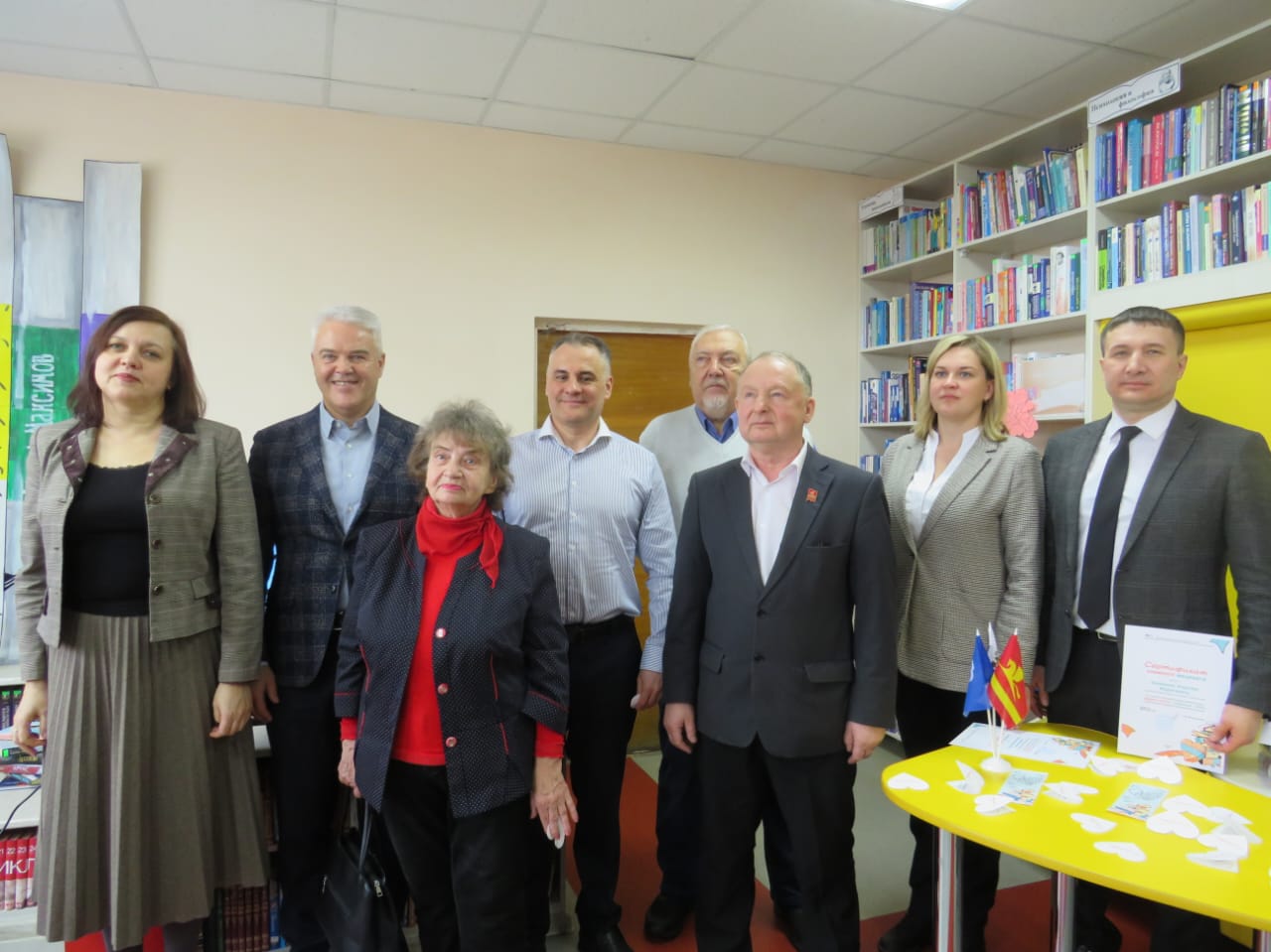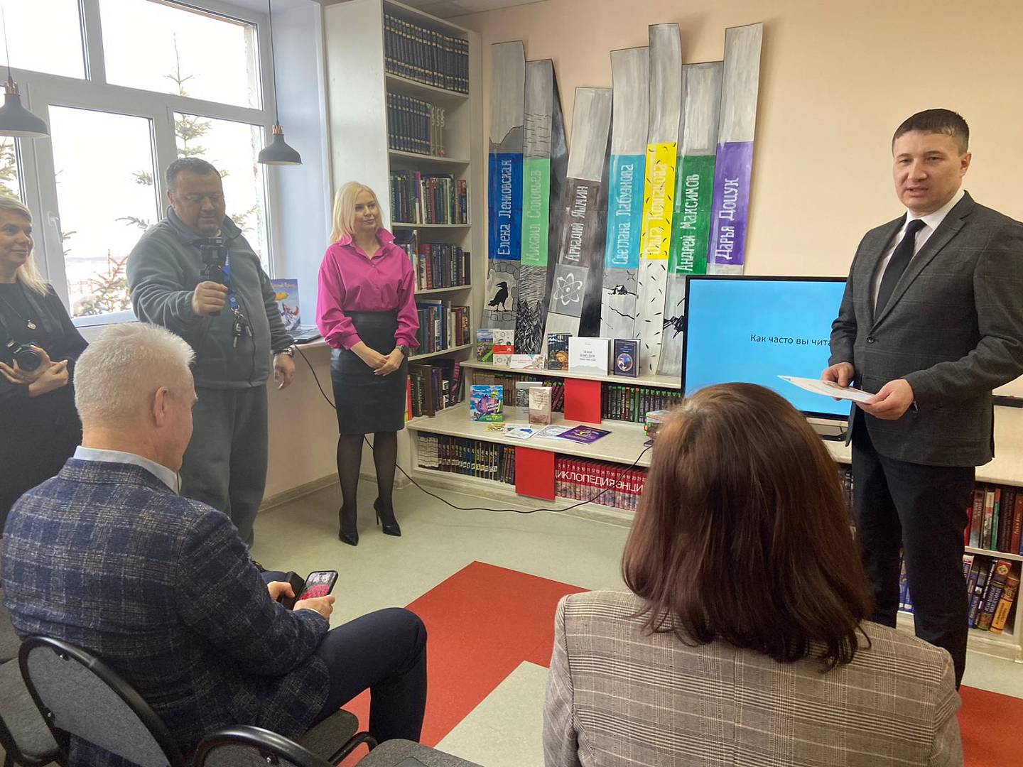 Пополнить библиотечный фонд пришли спикер Собрания депутатов Алексей Карюков, депутаты: Татьяна Накоскина, Вадим Сидякин, Анвар Гизатуллин, Сергей Лукьянов.