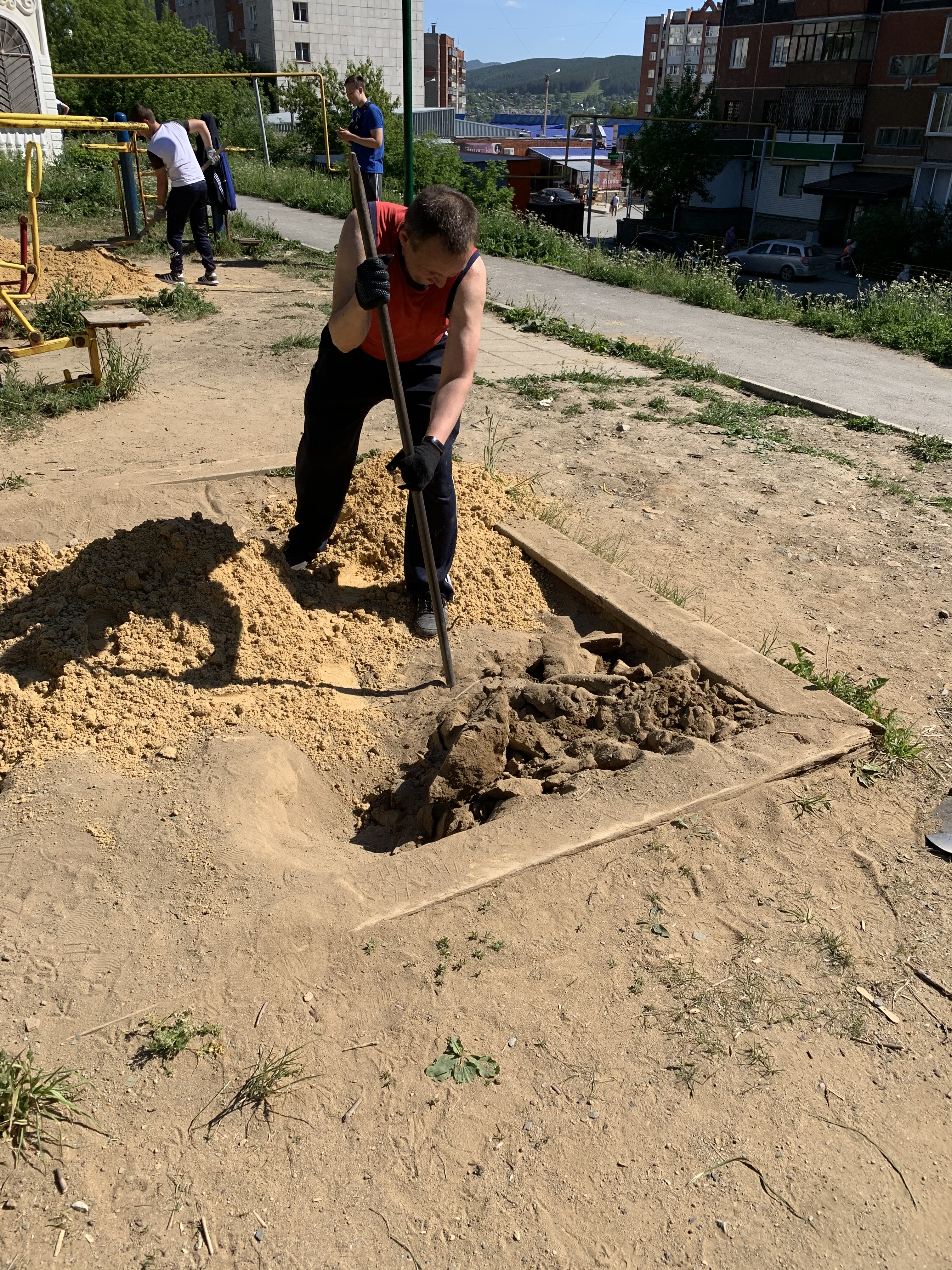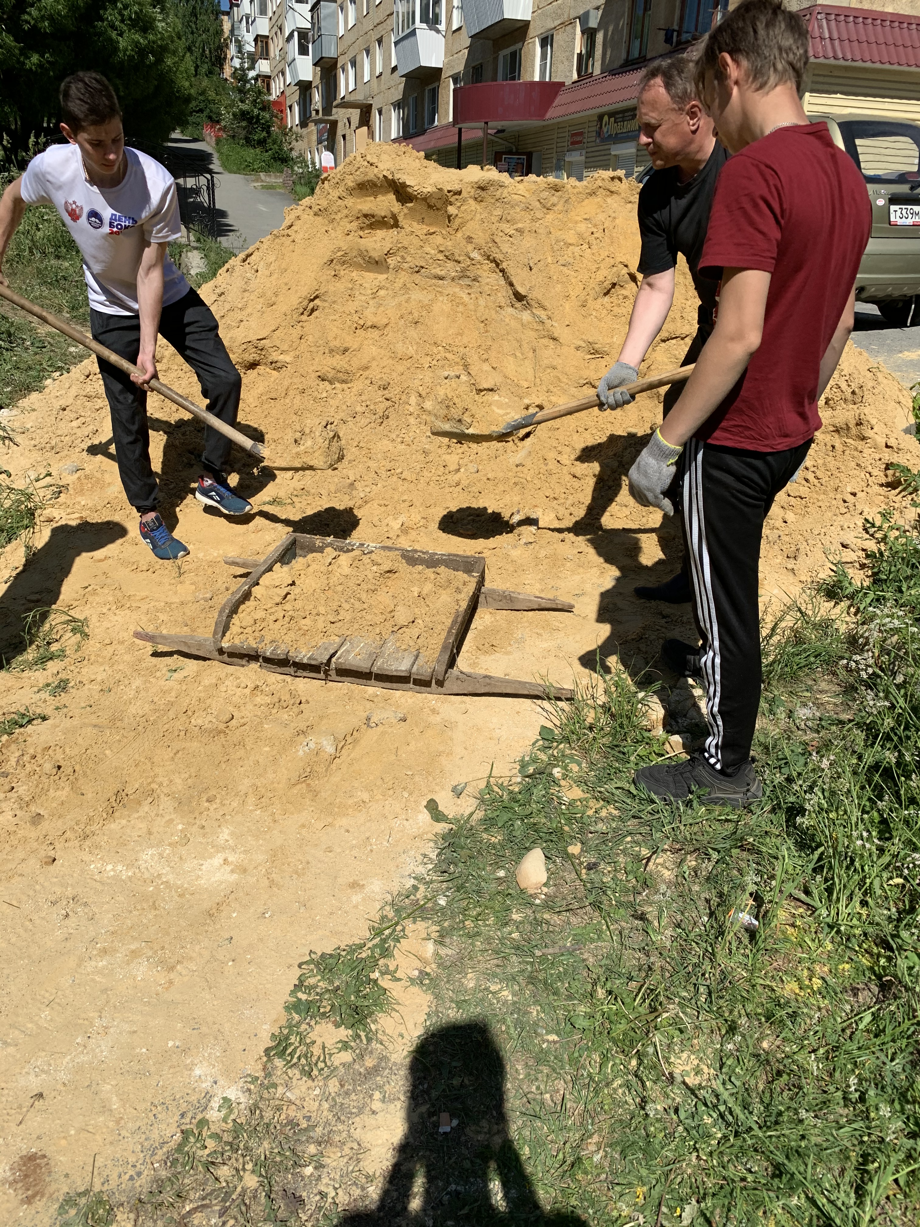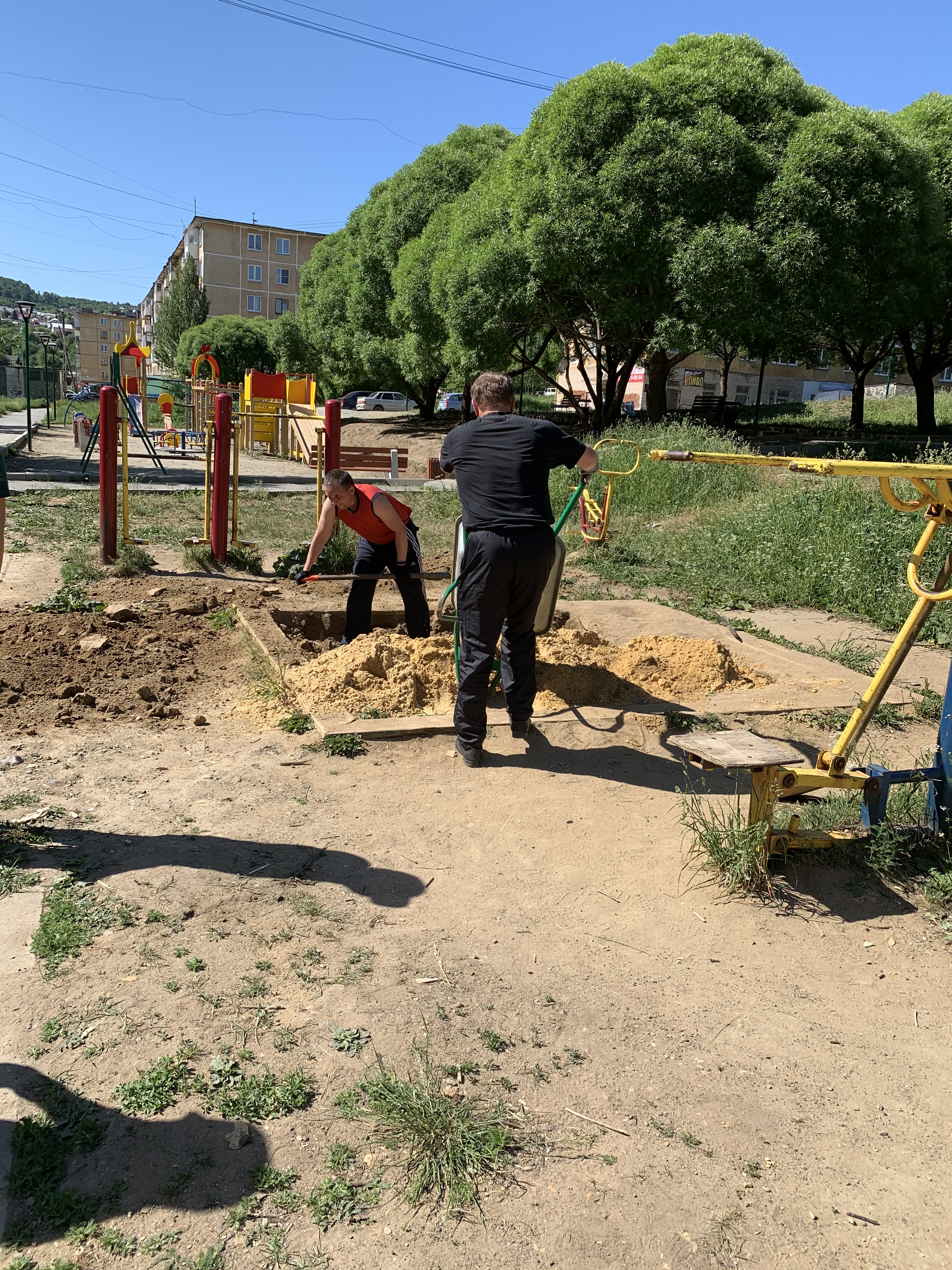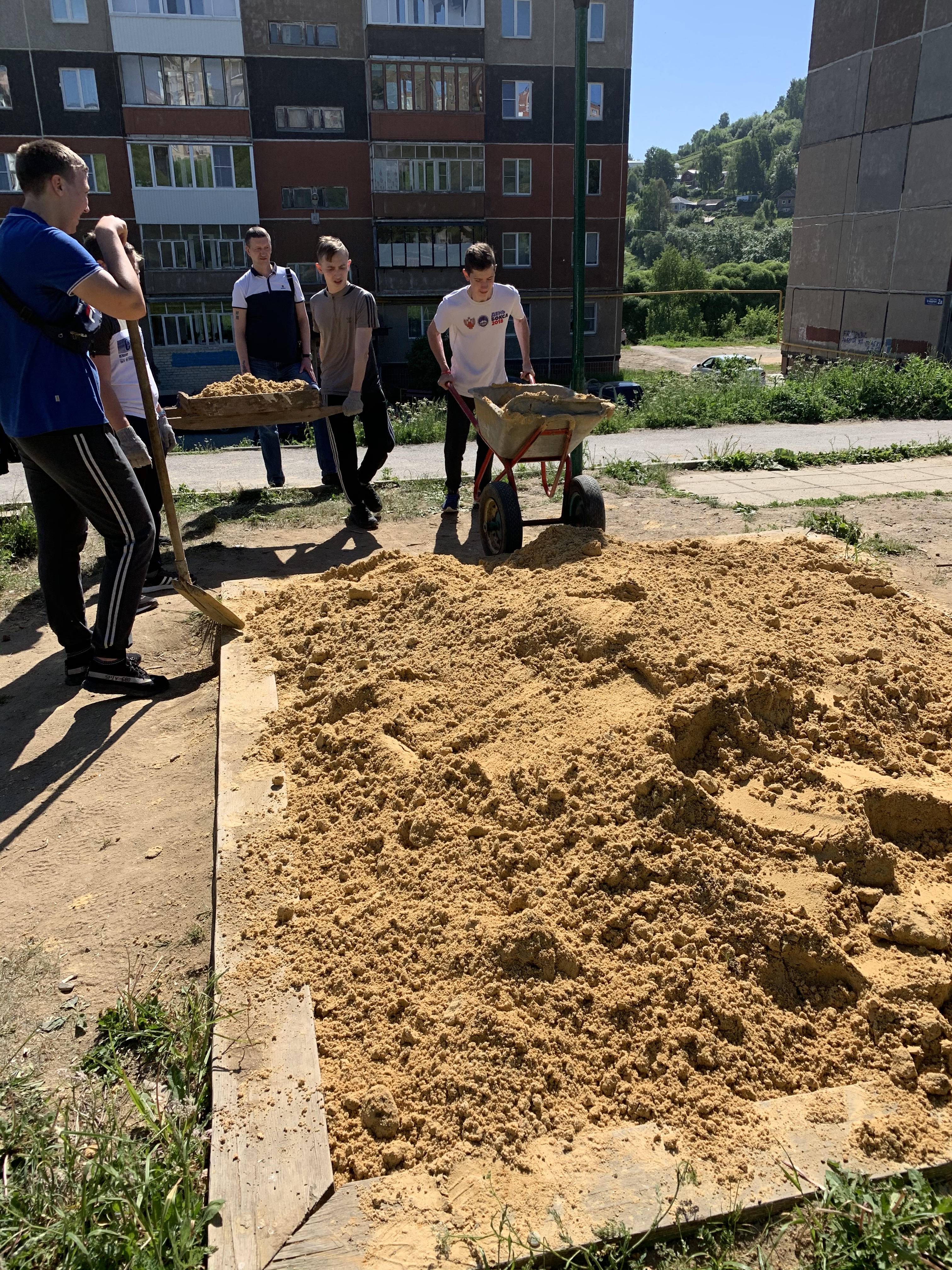 Большегрузный самосвал с песком удалось поделить на две площадки: сквер «Северо-Западный» и дом №7 1-го квартала района Северо-Запад, где находится межквартальная игровая площадка у детской поликлиники. На следующий день Виктором Рощупкиным был организован субботник в сквере, с участием студентов златоустовского техникума технологий и экономики, старших домов, которые находятся рядом с зоной отдыха горожан. Как результат - две большие песочницы были наполнены свежим песочком для веселой детворы. Кроме того, от дома №7 все обратившиеся жители других МКД округа №21 смогли забрать привезённый песок для своих песочниц.