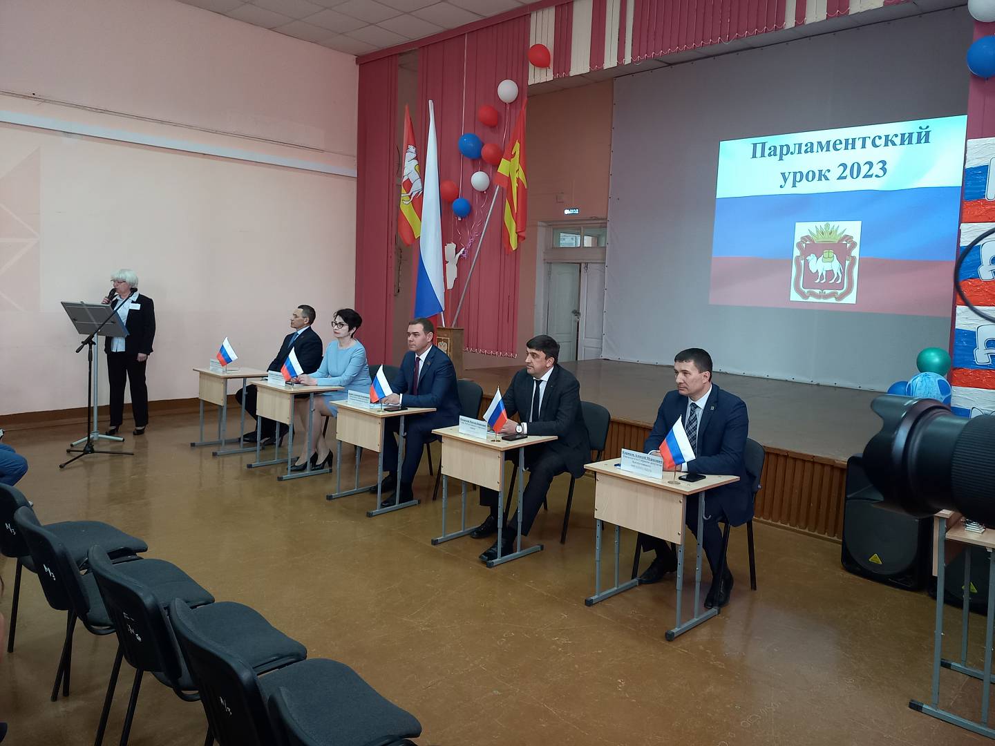 В ходе парламентского урока состоялся живой, интересный диалог с учащимися 10 и 11 классов. Спикер областного парламента и депутаты Олег Садовских и Татьяна Кузнецова обозначили важные перспективные направления для реализации потенциала юного поколения.