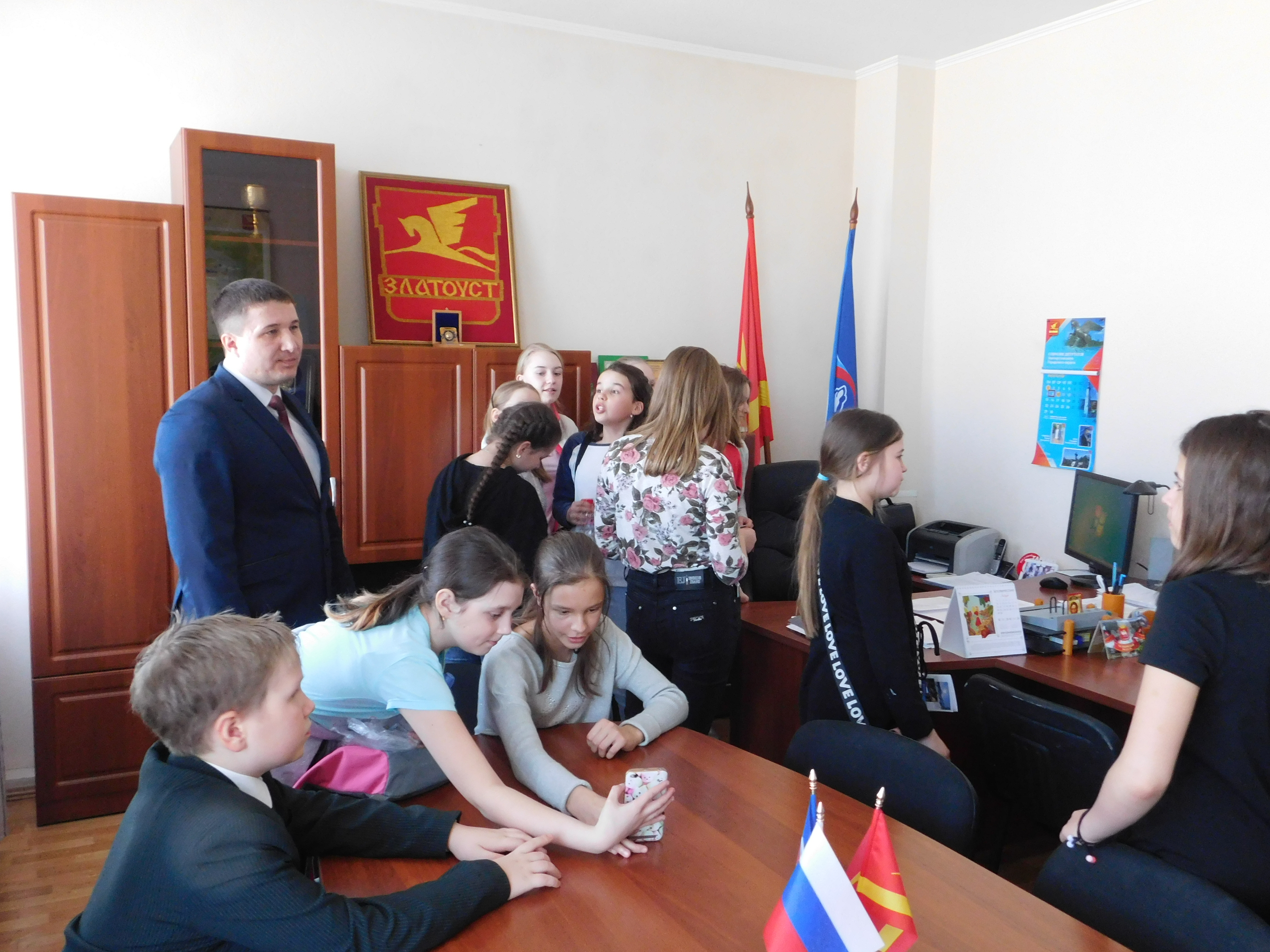 В Собрании депутатов школьников встретил председатель Собрания депутатов Алексей Карюков. Вместе с депутатом Александром Романовым парламентарий рассказал о рабочих буднях народных избранников и даже позволил любознательным экскурсантам присесть за свой рабочий стол, ведь в будущем, возможно, кто-то из них свяжет свою судьбу с политикой.