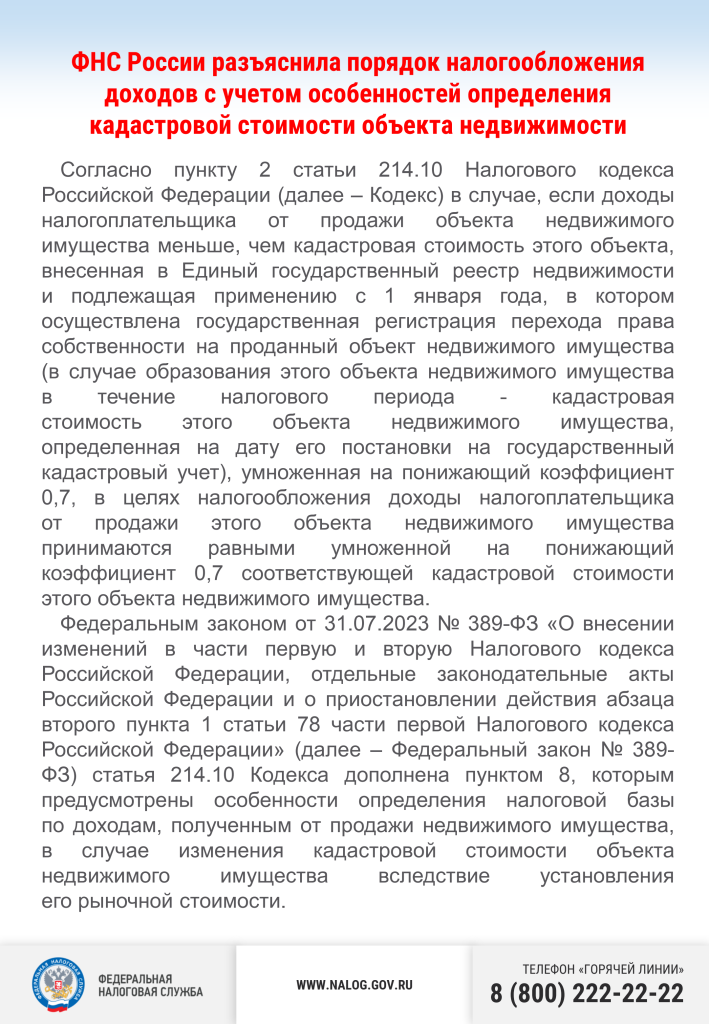 ФНС России разъяснила порядок налогообложения доходов с учетом особенностей определения кадастровой стоимости объекта недвижимости