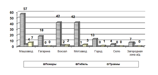 В жилом секторе произошло 108 пожаров, что составляет 61,3 % от общего количества пожаров. 100 % от числа погибших при пожарах приходится на жилой сектор, пострадало в жилье 9 человек.