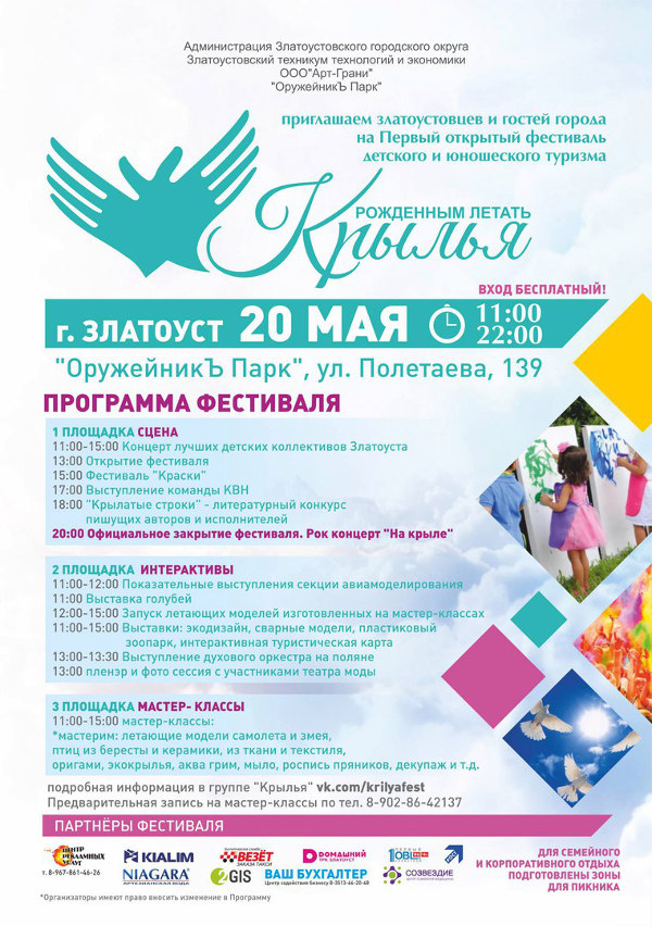 20 мая в Златоусте пройдёт открытый фестиваль «Крылья», направленный на развитие детского и юношеского туризма.