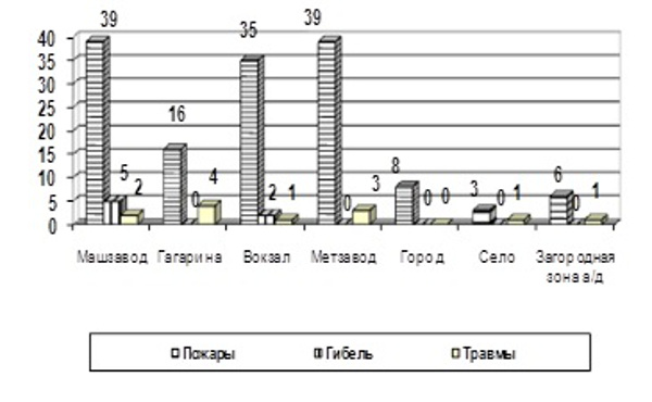 - в многоквартирных жилых домах (в квартирах) произошло 28 пожаров (19 % от общего числа происшедших пожаров) в результате которых 1 человек погиб, травмы получили 7 человек;