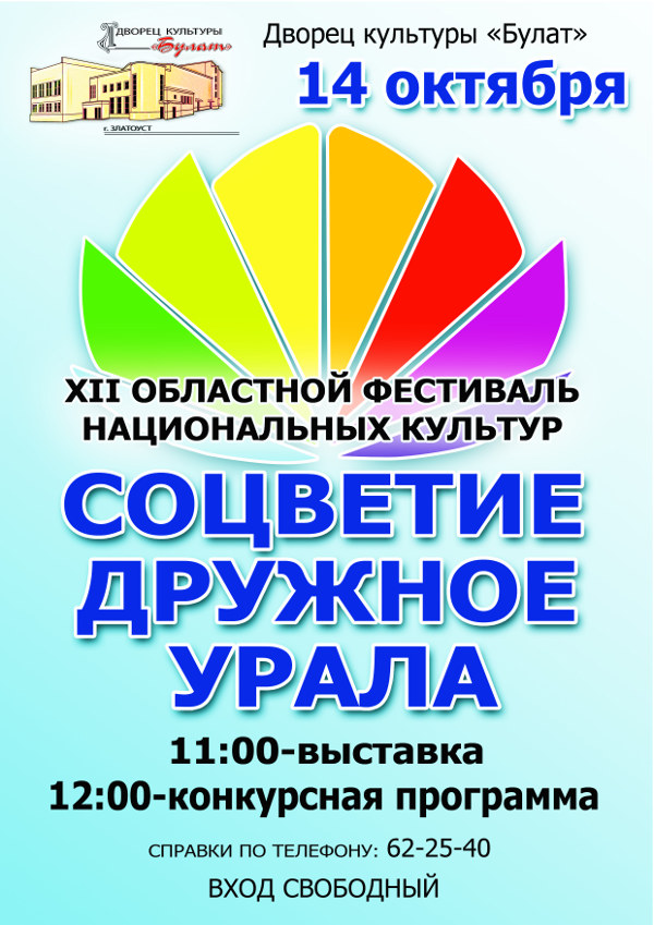 14 октября в Златоусте состоится отбор участников XII областного фестиваля национальных культур «Соцветие дружное Урала», посвященного Году экологии в России.