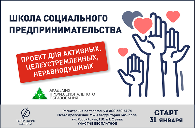 МФЦ «Территория бизнеса» (г. Челябинск) запускает новый проект – «Школа социального предпринимательства». Участники проекта смогут освоить те компетенции и знания, которые необходимы для успешного ведения социального бизнеса. В качестве спикеров выступят эксперты в области юриспруденции, финансов и маркетинга.