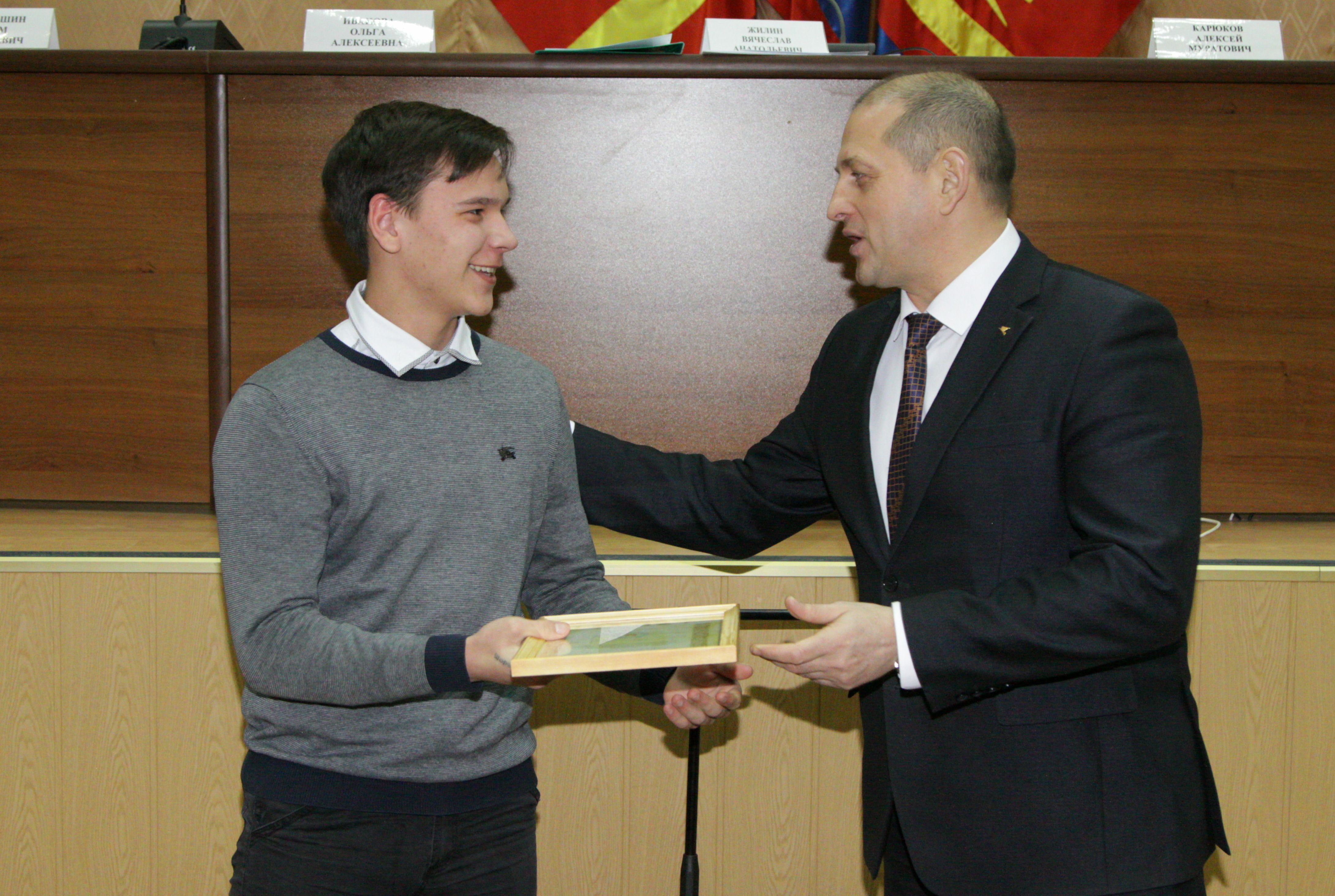 За совершение мужественного поступка – задержание преступника Благодарственное письмо главы округа вручено Дмитрию Гиндышу, учащемуся 9 класса средней общеобразовательной школы № 1 им. Юрия Алексеевича Гагарина.