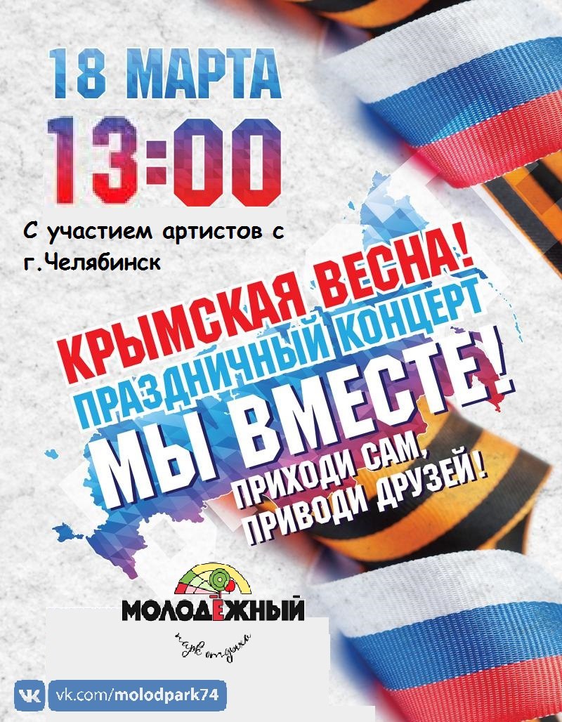 В Златоустовском городском округе 18 марта 2018 года в честь воссоединения Крыма с Россией пройдет праздничный концерт «Крымская весна».