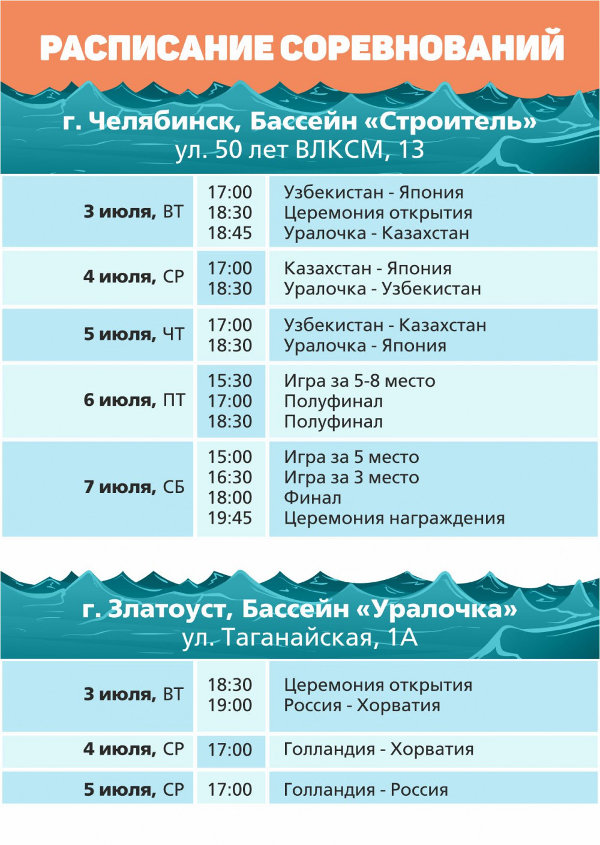 В челябинском бассейне «Строитель» с 3 по 5 июля в матчах группового этапа сыграют ватерполистки Казахстана, Узбекистана, Японии и златоустовской «Динамо-Уралочки».