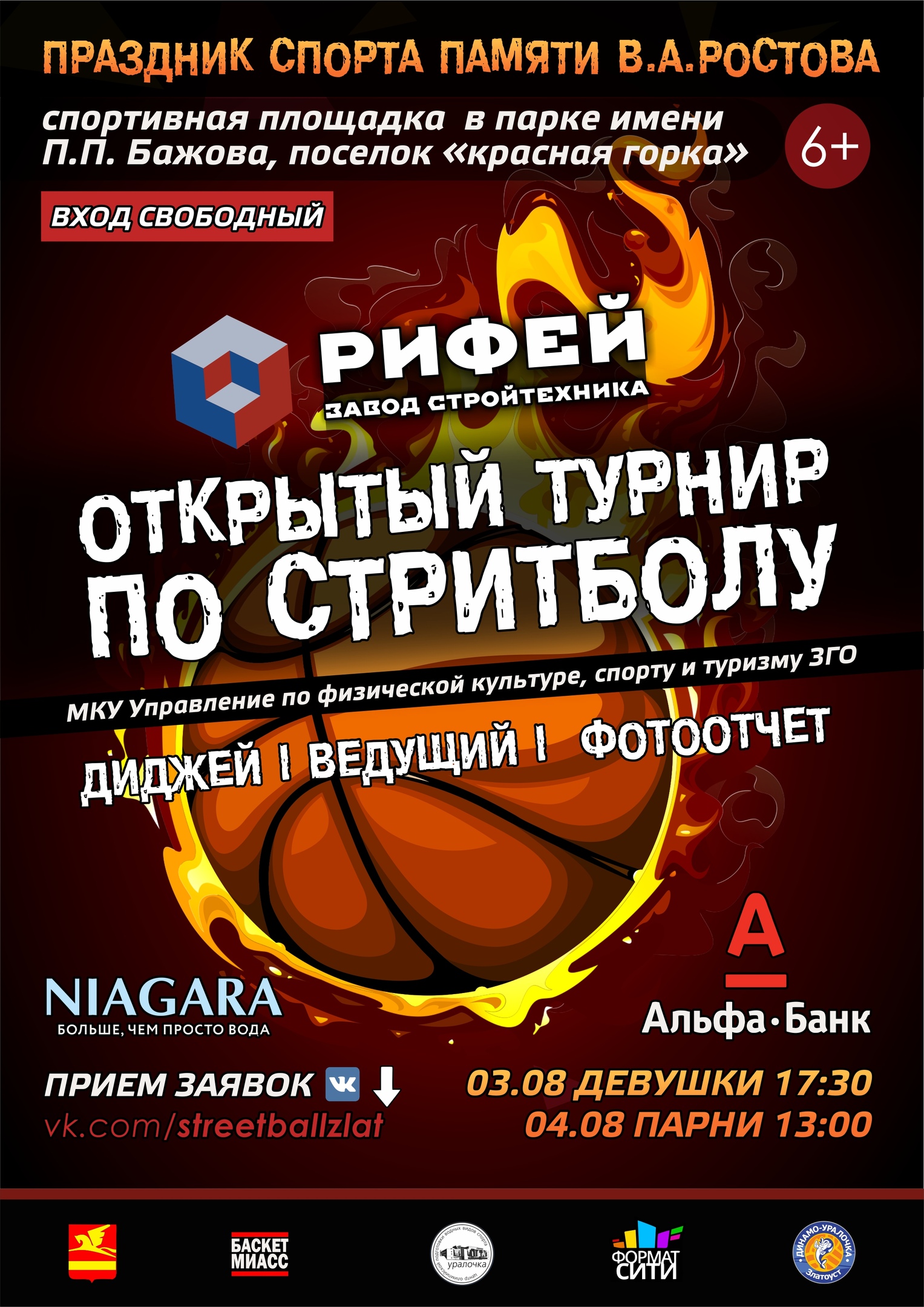 3 и 4 августа на спортивном корте в горном парке им. П. П. Бажова (пос. Красная горка) состоится открытый турнир по стритболу с участием лучших команд Челябинской области.