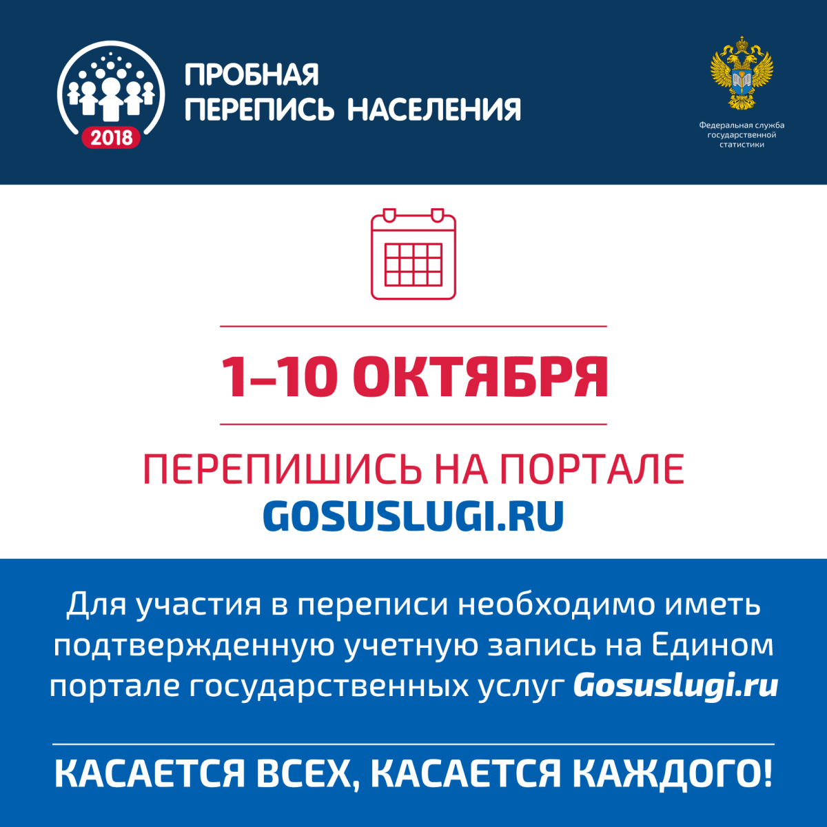 Пробная перепись населения 2018 года пройдет в период с 1 по 31 октября в два этапа.