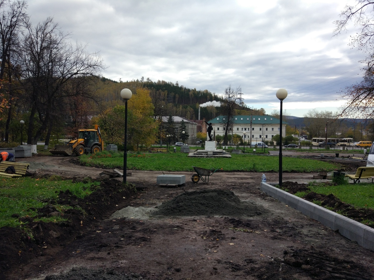 В Златоустовском городском округе в рамках реализации проекта «Реальные дела» полным ходом идут работы по благоустройству парка в районе железнодорожного вокзала (между улицами им. П. П. Аносова и П. А. Румянцева).
