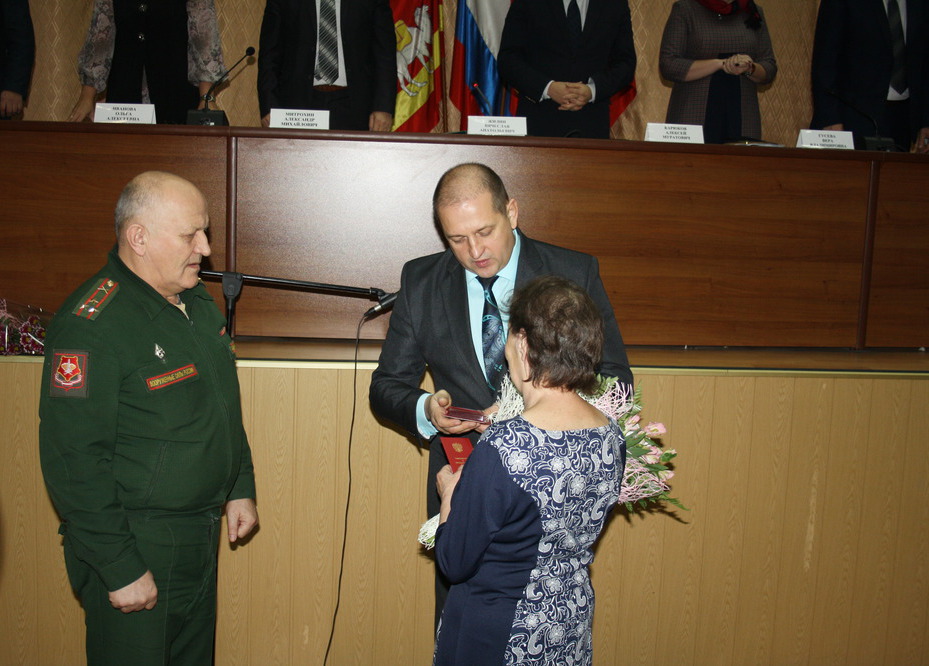 Традиционное рабочее совещание началось с торжественной передачи удостоверения к государственной награде СССР – медали «За отвагу» погибшего участника Великой Отечественной войны ефрейтора Алексея Васильевича Чаглова его внучке Людмиле Павловне Полянсковой. Данная реликвия как память будет храниться в семье красноармейца.