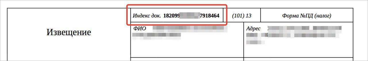 Индекс документа находится в верхней части квитанции. Такой реквизит есть на бумажных квитанциях, которые приходят по почте, и в электронных – сформированных на сайте nalog.ru