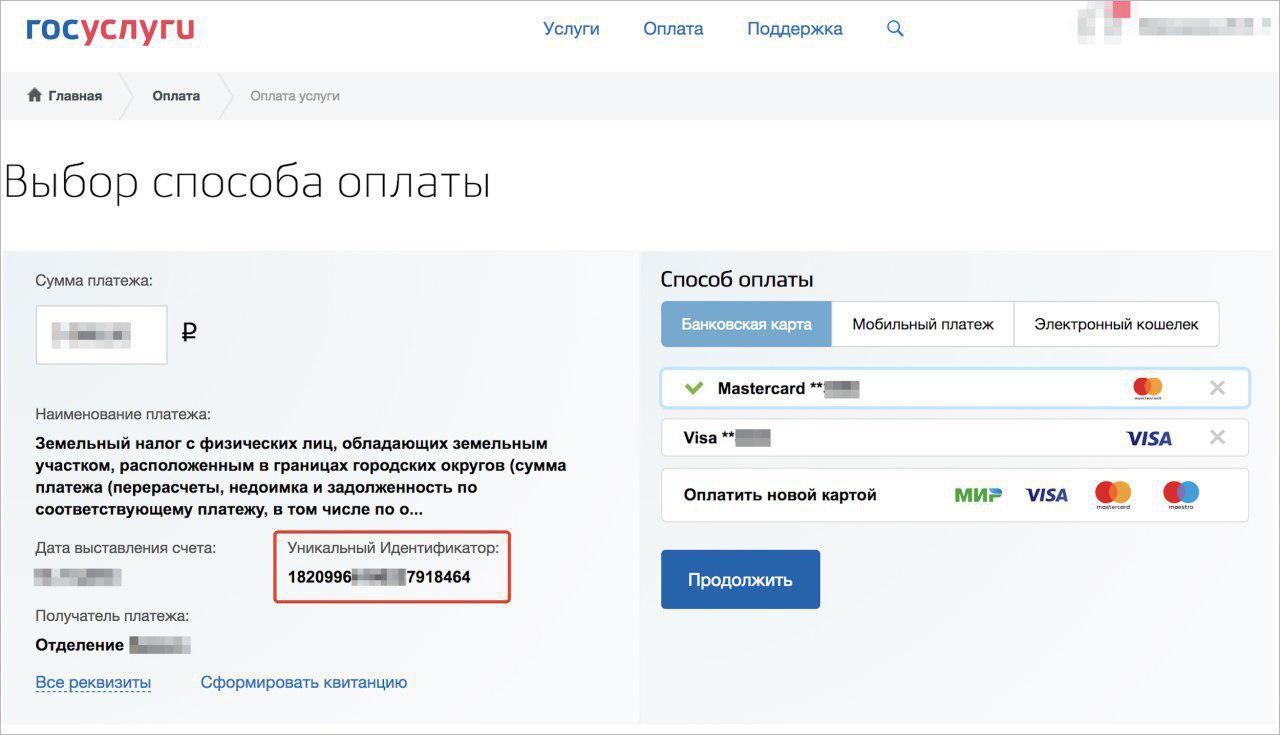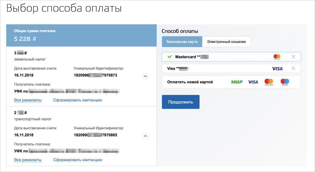 Все данные для уплаты налога будут сформированы автоматически. Если на портале у вас привязана банковская карта, останется только нажать кнопку «Продолжить». И налог будет уплачен: при необходимости можно сохранить квитанцию с подтверждением.