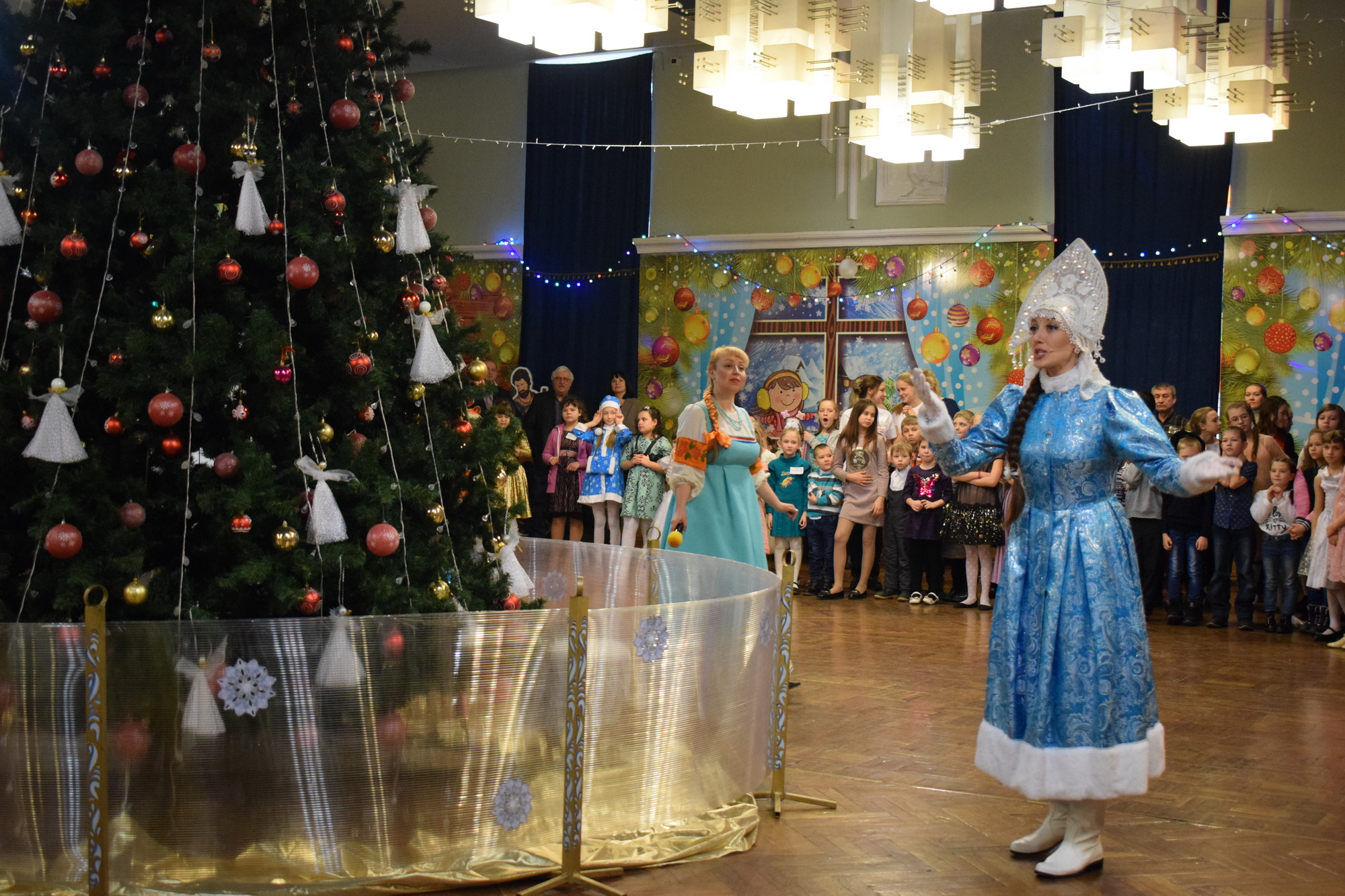 Праздник начался возле елки в театральном фойе, так что ребята сразу окунулись в праздничную атмосферу, почувствовав себя героями сказки. До начала спектакля детвора участвовала в творческих мастер-классах, конкурсах и сценках. Для них работала рождественская почта, с которой можно было отправить открытку родителям.