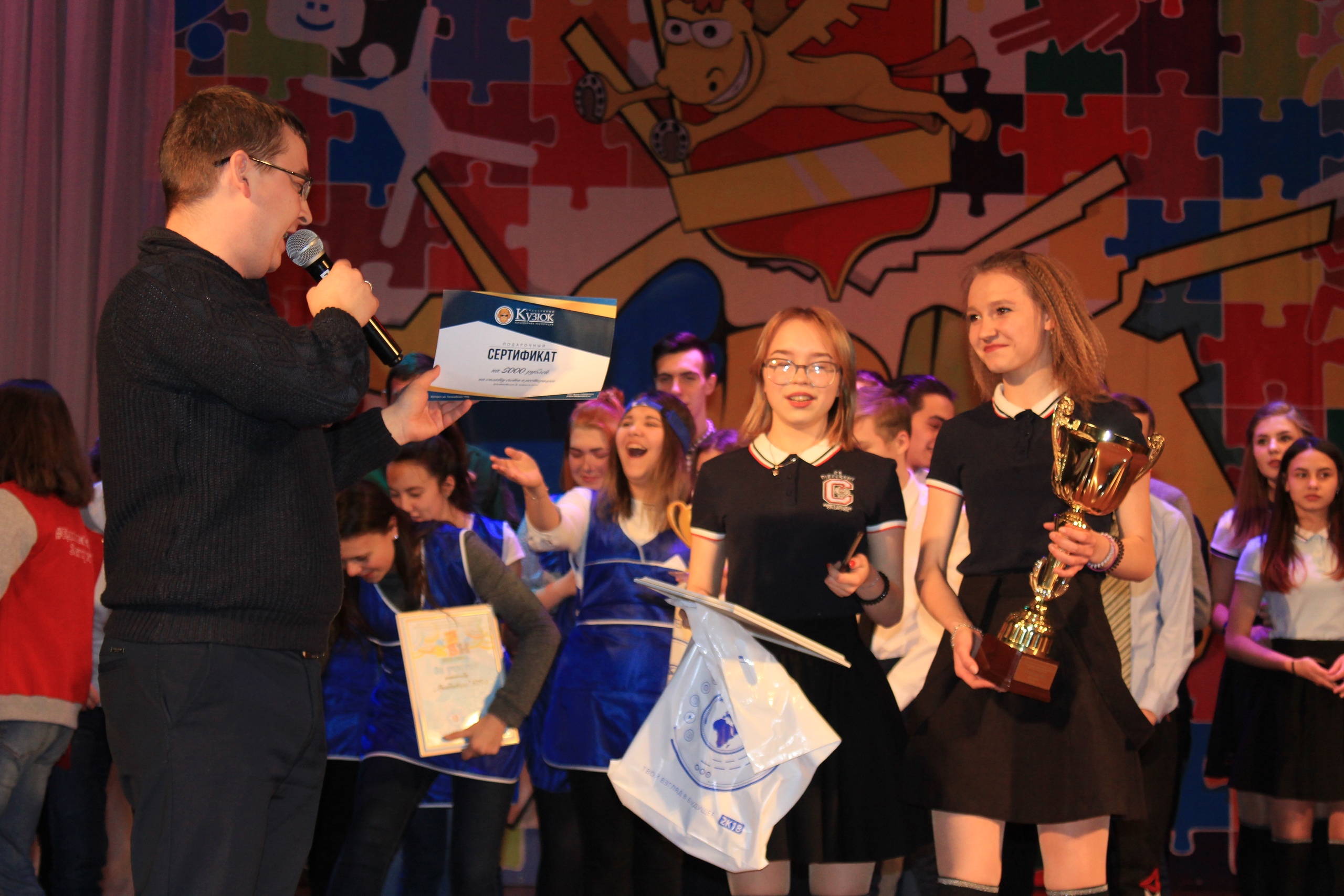 «Подготовка была сложной. Мы встречаемся каждую пятницу, придумываем шутки, пьём чай, иногда в процессе ссоримся, но нечасто, так как мы довольно сплочённая команда. Сейчас много эмоций, с самого утра здесь, перед выходом потеют ладошки, колени трясутся, на сцене думаешь только о том, чтобы ничего не забыть. И когда нас награждают, вручают этот Кубок — не описать словами!» — поделились Екатерина Алексеева и Александра Зорина.