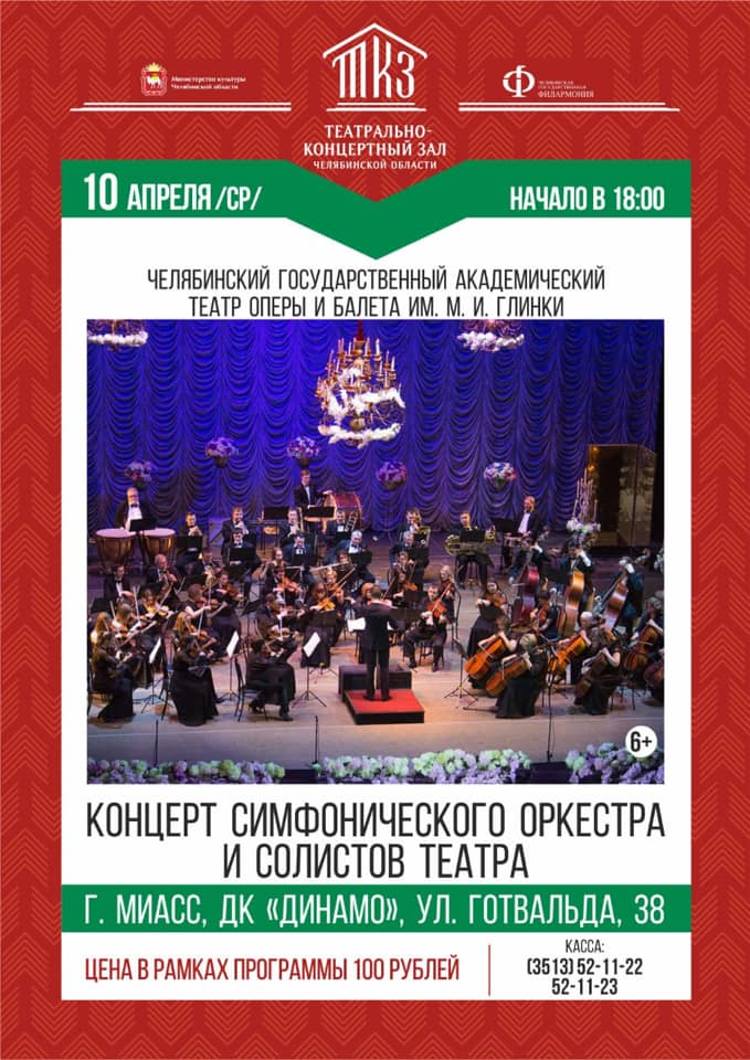 В рамках областного проекта «Театрально-концертный зал» жители Златоуста смогут посетить выступление симфонического оркестра и солистов Челябинского Государственного академического театра оперы и балета имени М. И. Глинки.