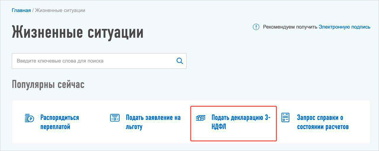 Формы и программа для деклараций находятся в разделе «Жизненные ситуации»