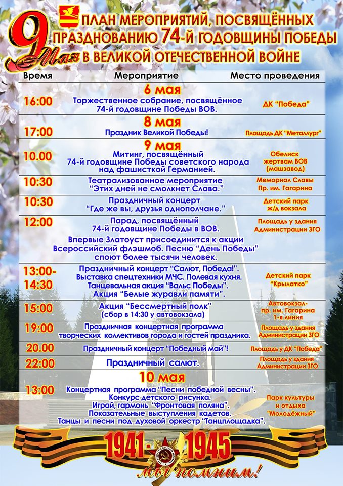 План городских мероприятий, посвященных празднованию Дня Победы в Великой Отечественной войне