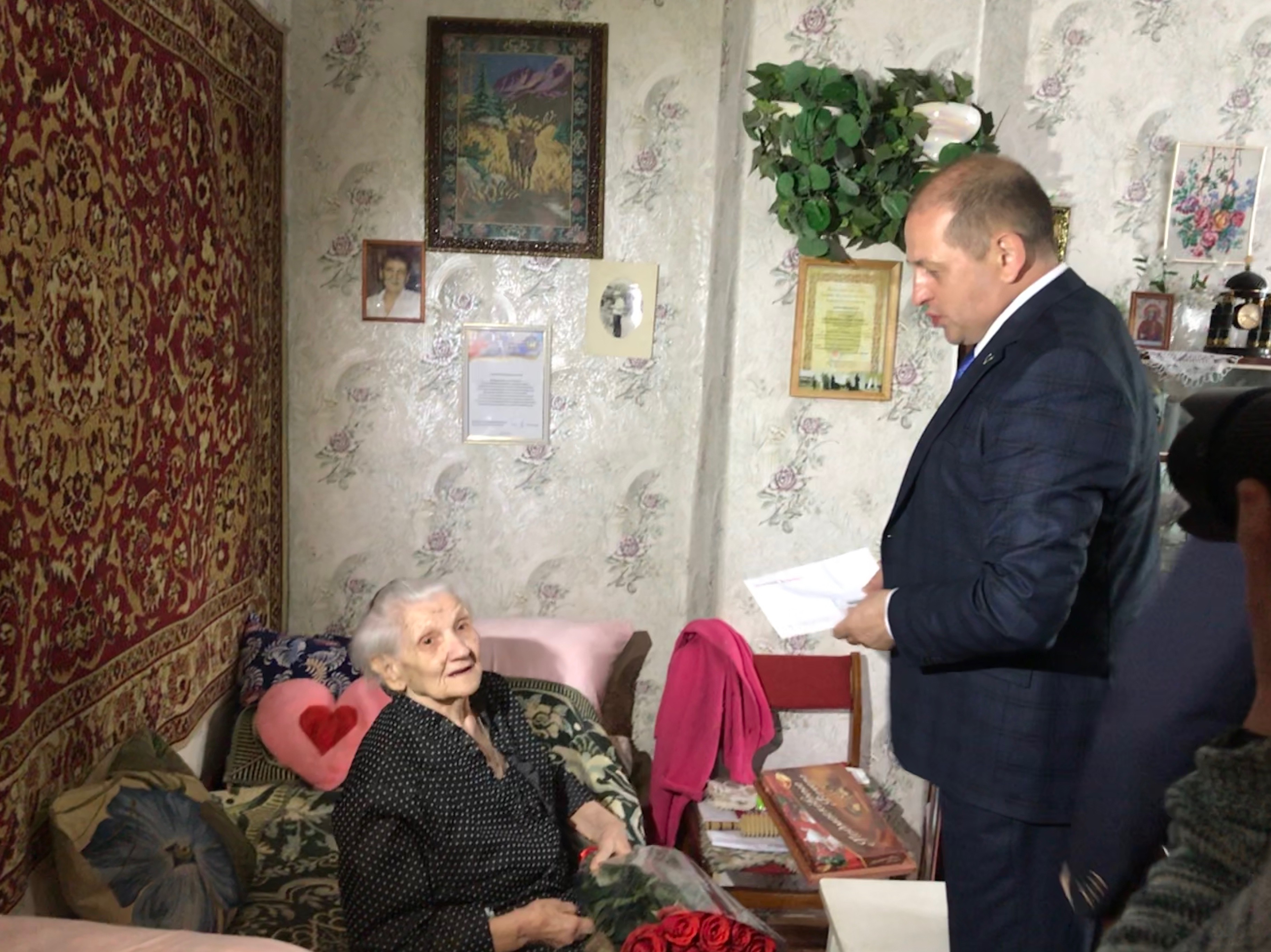 Глава Златоуста Вячеслав Жилин вручил имениннице цветы и подарки, а также передал поздравительный адрес от Президента России Владимира Путина.