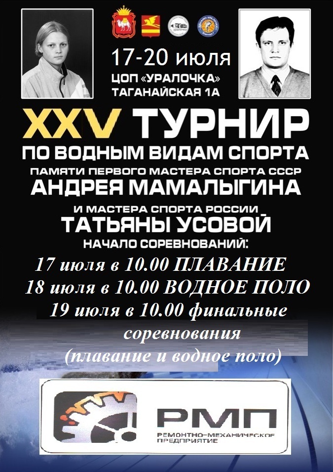 С 17 по 19 июля в Центре олимпийской подготовки «Уралочка» в 25-й раз будет проходить турнир, посвященный памяти первого златоустовского мастера спорта СССР по плаванию Андрея Мамалыгина и мастера спорта России по водному поло Татьяны Усовой.