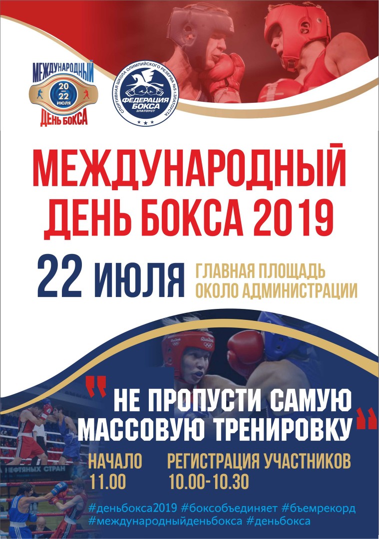 22 июля на площади у здания администрации состоится спортивный праздник, посвященный Международному дню бокса. Начало в 11.00, регистрация участников с 10.00 до 10.30.
