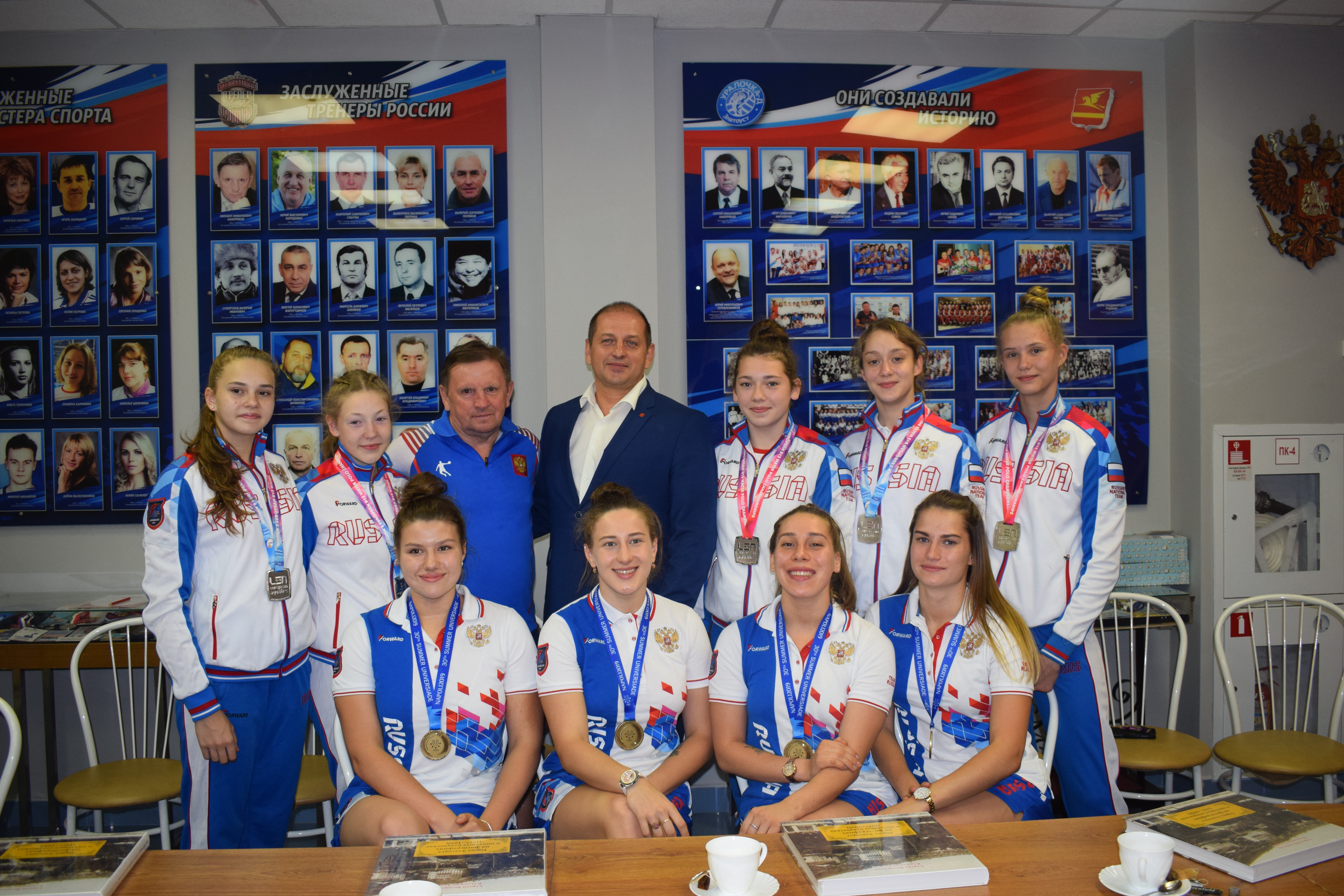Градоначальник поздравил спортсменок и их наставника с бронзовыми медалями XXX Всемирной Летней Универсиады и серебром первенства Европы среди девушек до 15 лет, вручил подарки от администрации округа.