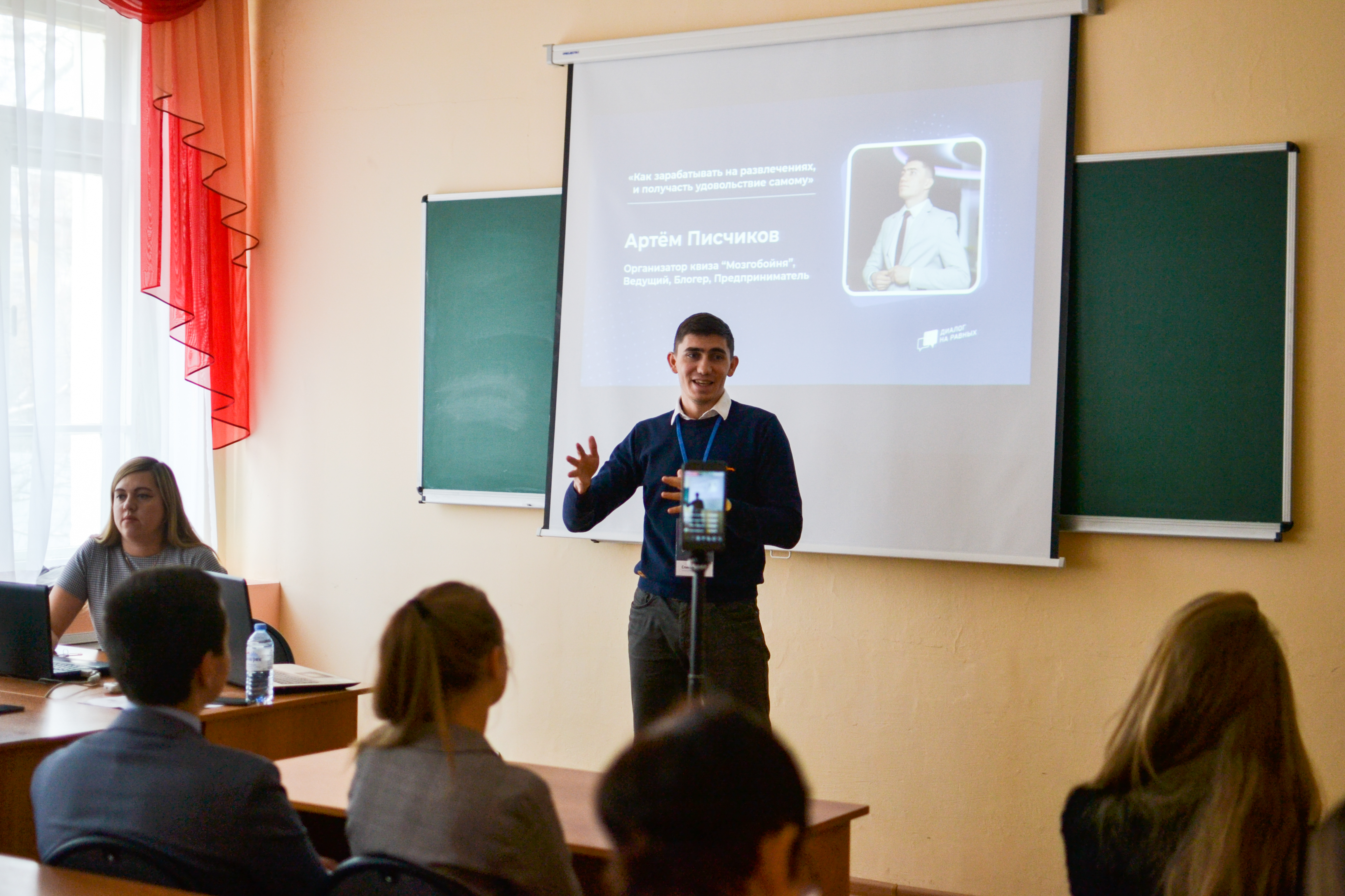 Спикер рассказал о своей карьере, профессиональном пути, рисках в работе предпринимателя. В неформальной обстановке студенты узнали о подводных камнях бизнеса: как правильно открыть свое дело, как привлечь клиентов, с каким проблемами можно столкнуться. Участники «Диалога на равных» интересовались, какие гарантии того, что бизнес будет всегда актуальным.