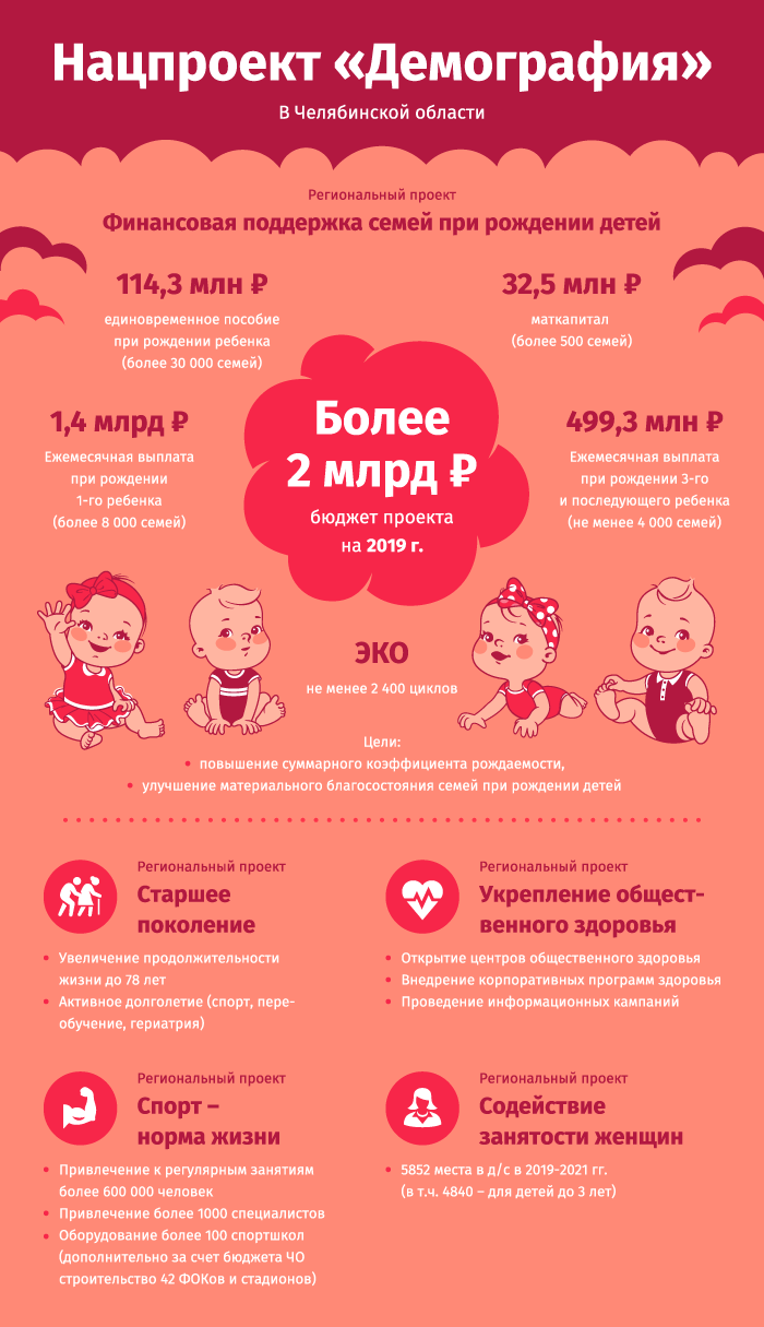 Добавим, Челябинская область участвует во всех 12 национальных проектах: «Демография», «Здравоохранение», «Образование», «Жилье и городская среда», «Экология», «Безопасные и качественные автомобильные дороги», «Производительность труда и поддержка занятости», «Наука», «Цифровая экономика», «Культура», «Малое и среднее предпринимательство и поддержка индивидуальной предпринимательской инициативы», «Международная кооперация и экспорт».