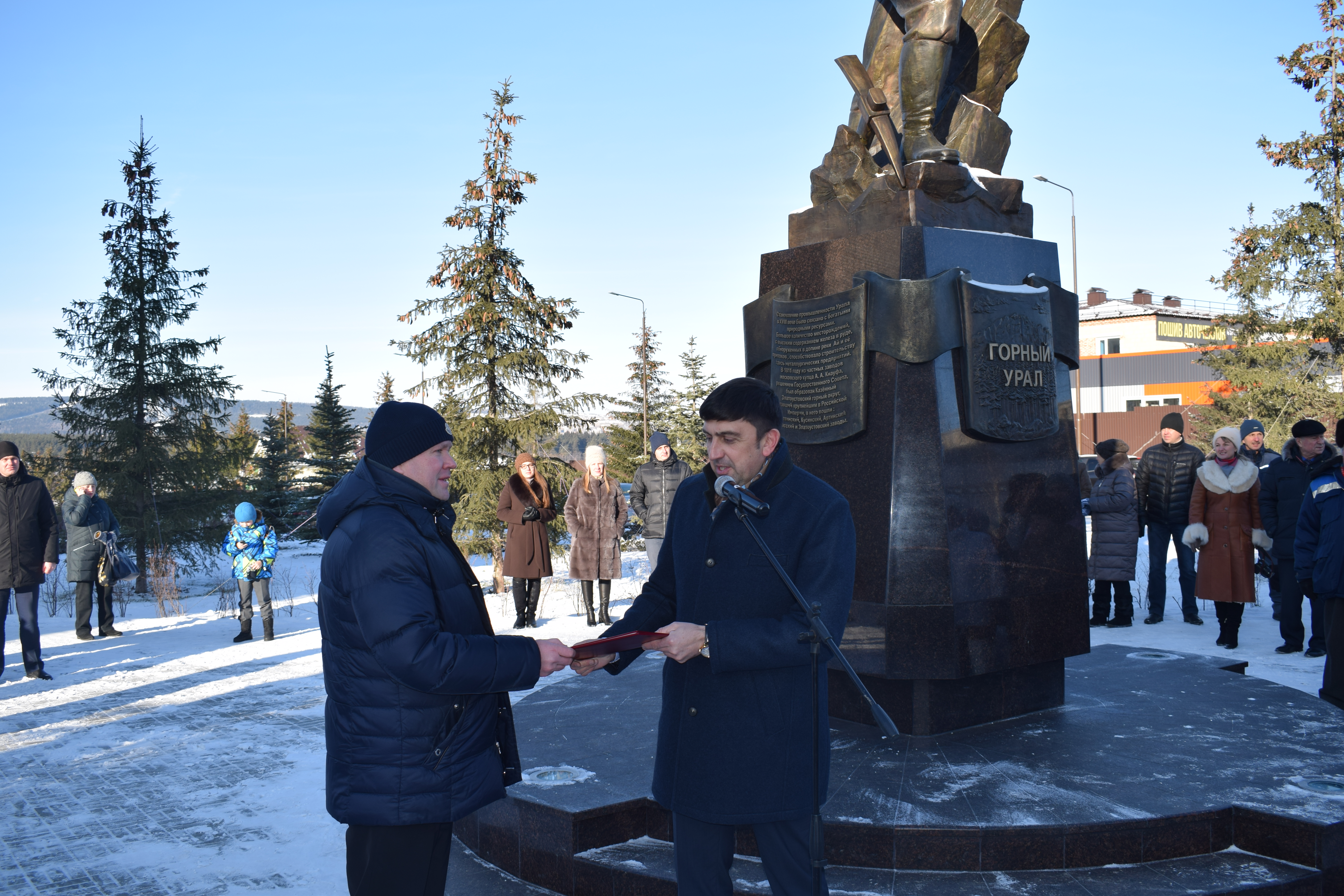 Памятный монумент открыт сегодня, 21 ноября, в сквере на пересечении ул. 40-летия Победы и ул. Лесная. Скульптура «Горный Урал» олицетворяет культуру и историю человека-труда.