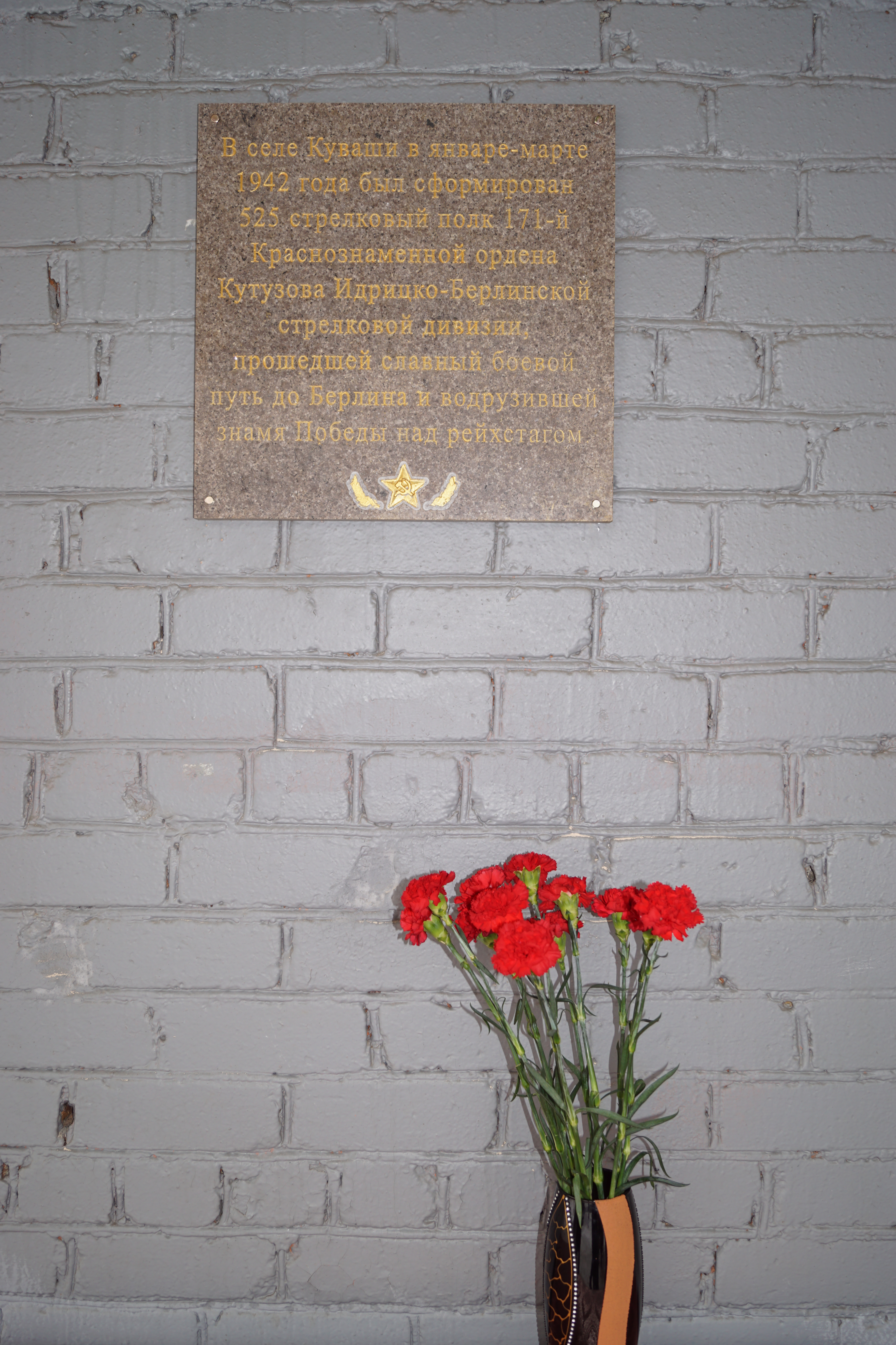 15 февраля у здания школы в п. Центральный прошло мероприятие, посвящённое открытию мемориальной доски памяти 525 полка 171 стрелковой дивизии, а также передача знамени полка в храм с. Куваши.