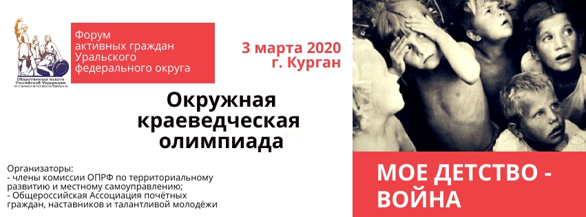 Представленные на конкурс вопросы могут быть использованы при проведении Уральской окружной интеллектуальной краеведческой Олимпиады «Мое детство – война». Олимпиада состоится в рамках форума активных граждан Уральского федерального округа «Сообщество» в Кургане 3 - 4 марта (регистрация по ссылке – http://форумсообщество.рф/).