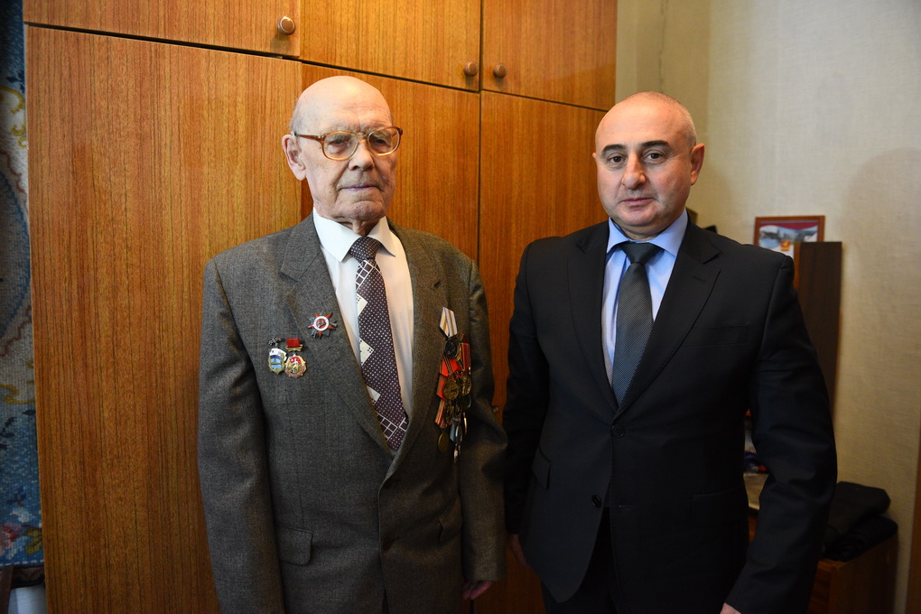 Затем Михаил Каган и Максим Пекарский по поручению Президента РФ вручили памятную медаль «75 лет Победы в Великой Отечественной войне 1941 – 1945 гг.» златоустовцу, участнику войны Владимиру Степановичу Устинову. Владимир Степанович был призван на фронт в 1942 году. Воевал на Дальневосточном фронте. Награжден орденом Отечественной войны II степени, медалями «За победу над Германией в Великой Отечественной войне 1941 – 1945 гг.», «За победу над Японией». Уволен в запас в апреле 1947 года. После войны окончил Уральский политехнический институт в Свердловске (ныне г. Екатеринбург). С 1962 года по 1990 год трудился на металлургическом заводе, в центральной заводской лаборатории ведущим инженером, заместителем начальника цеха.