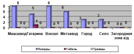 Анализ пожаров, погибших и травмированных по районам города