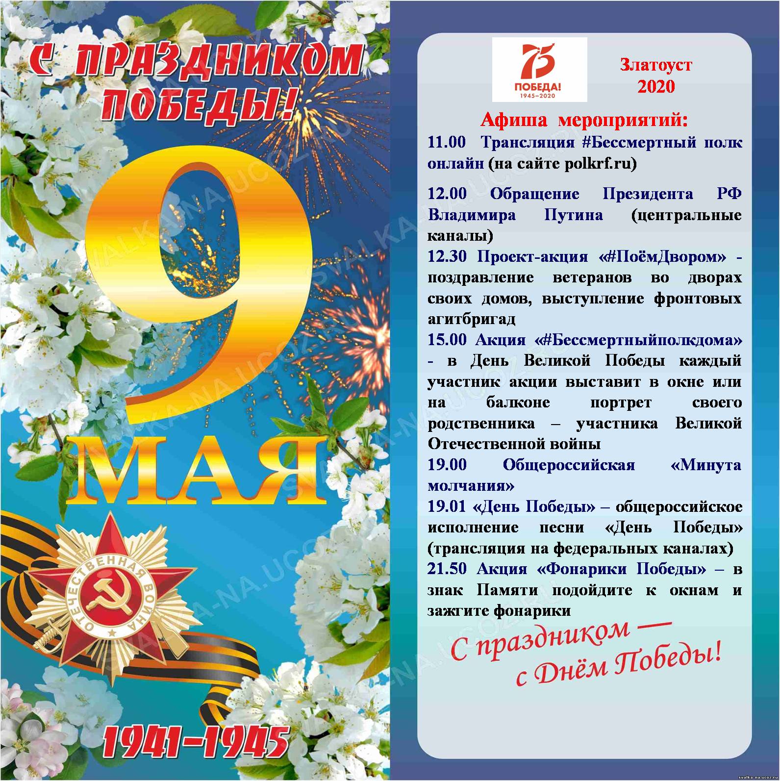 9 мая в Златоусте запланированы мероприятия, приуроченные к празднованию 75-й годовщины Победы в Великой Отечественной войне.