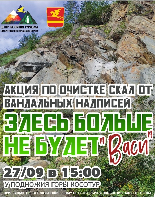 «В ходе акции, направленной на восстановление первозданной природной чистоты горы Косотур, планируем очистить скалы от надписей и собирать мусор, — рассказала директор Центр развития туризма ЗГО Дина Шведкина. — Приглашаем всех желающих принять участие в экологическом субботнике».