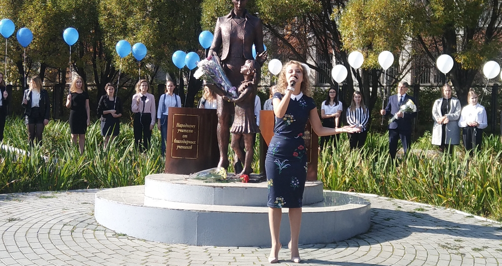 В Златоусте у скульптурной композиции «Любимый учитель» традиционно состоялось праздничное мероприятие, посвященное профессиональному празднику работников сферы образования