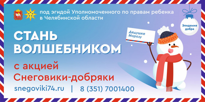 В пятницу, 13 ноября, отмечается всемирный день доброты. Организаторы акции «Снеговики-добряки», которая стартовала 3 ноября и проходит под эгидой уполномоченного по правам ребенка в Челябинской области, призывают неравнодушных жителей округа помочь детям, оказавшимся в трудной жизненной ситуации.