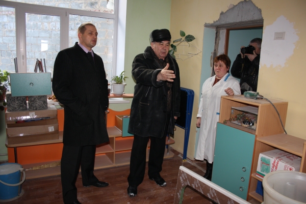 Строительные работы здесь находятся на стадии завершения. Почти окончена отделка, впереди — облицовка фасада. Проектом всё предусмотрено: большие игровые комнаты с утеплёнными полами, спальные, залы для занятий спортом и музыкой. Пристрой будет облицован белым сайдингом, цоколь – синим керамогранитом. Цветовая гамма побрана так, чтобы старая и новая часть садика выглядели единым ансамблем.