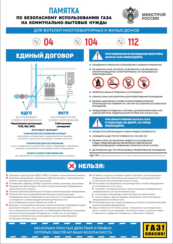 Единую памятку по безопасному использованию газа в быту, объединившую рекомендации по эксплуатации газового оборудования в многоквартирных и жилых домах, разработал совместно с регионами Минстрой России.