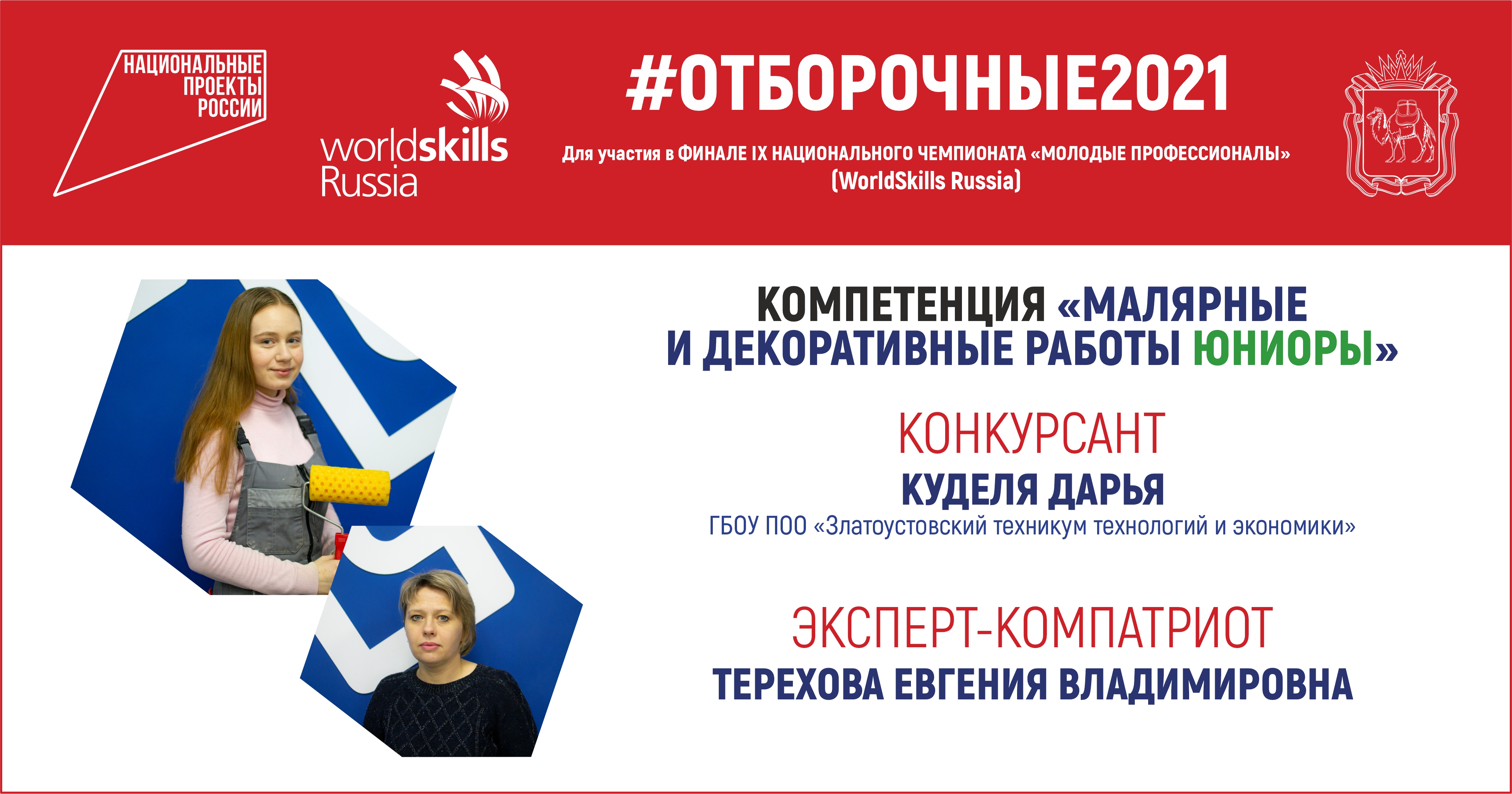 Дарья Куделя, студентка Златоустовского техникума технологий и экономики, покажет свое профессиональное мастерство в компетенции «Малярные и декоративные работы» среди юниоров.