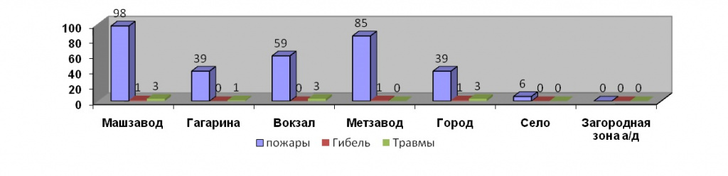 В жилом секторе зарегистрировано – 118 пожаров (36,2% от общего количества пожаров). В жилье погибло 2 человека и 10 человек получили травмы.
