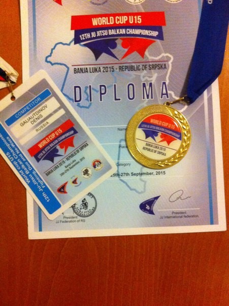 Златоустовский спортсмен Денис Галяутдинов завоевал золотую медаль на Первенстве мира по джиу-джитсу среди юношей и девушек до 15 лет, которое состоялось в Боснии и Герцеговине в городе Бане-Лука.
