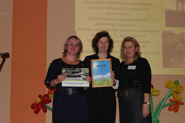 Златоустовский городской округ в конкурсе представляли пять учреждений – школы №№ 13, 15, 38, 90 и начальная школа – детский сад № 82. Все они достойно презентовали свои разработки. Школа № 13 поселка Центральный завоевала 1 место в номинации «Учебно-опытный участок». Их проект создания пришкольного учебно-опытного участка в сельской школе был признан жюри лучшим в области. Школа № 38 заняла 2 место в номинации «Интерьерное озеленение». Руководители проекта рассмотрели школьный сад в роли объекта, способствующего повышению качества образования и воспитания учащихся.