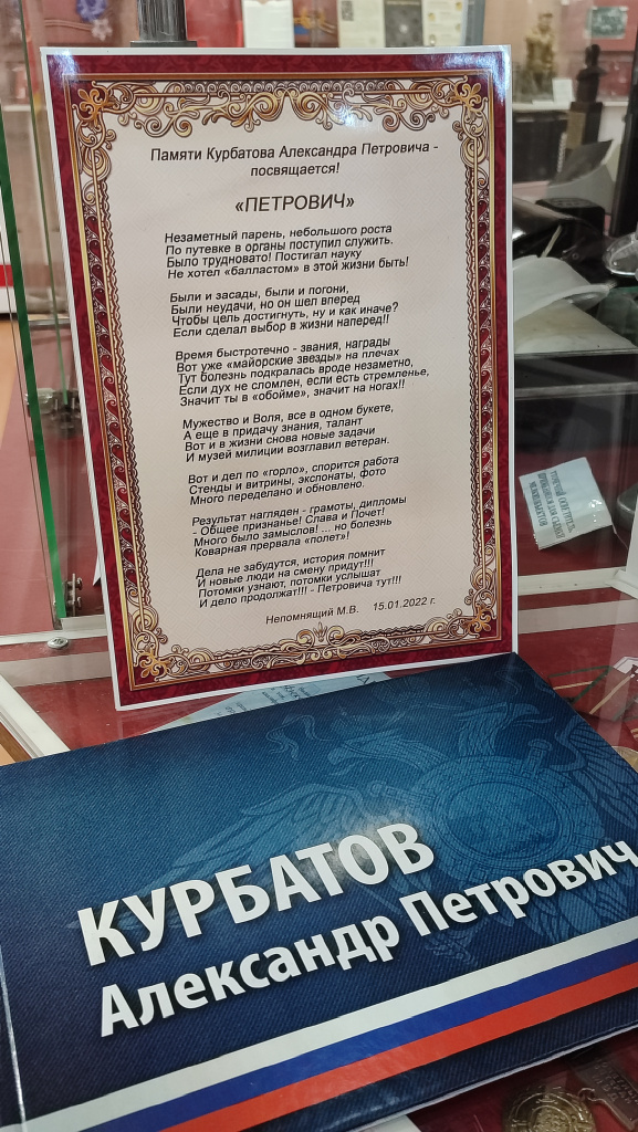 Эти строки ветеран МВД Михаил Непомнящий адресовал в 2022 году своему товарищу по службе, другу, соратнику Александру Курбатову. Вот уже десять лет, как почил Александр Петрович, но его до сих пор добрым словом вспоминают коллеги. И живым напоминанием о легендарном для Златоуста милиционере сегодня является его внук майор внутренней службы Михаил Курбатов — начальник отделения анализа, планирования и контроля Отдела МВД России по ЗГО.