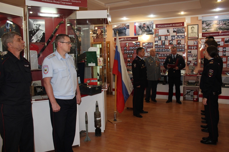 Поздравление поступивших на службу сотрудников полиции в коллективе О МВД РФ по Златоустовскому городскому округу сложившаяся традиция. Место проведения - музей истории Златоустовской милиции, полиции. В мероприятии приняли участие руководство, личный состав, представители Общественного совета, Совета ветеранов и средств массовой информации.