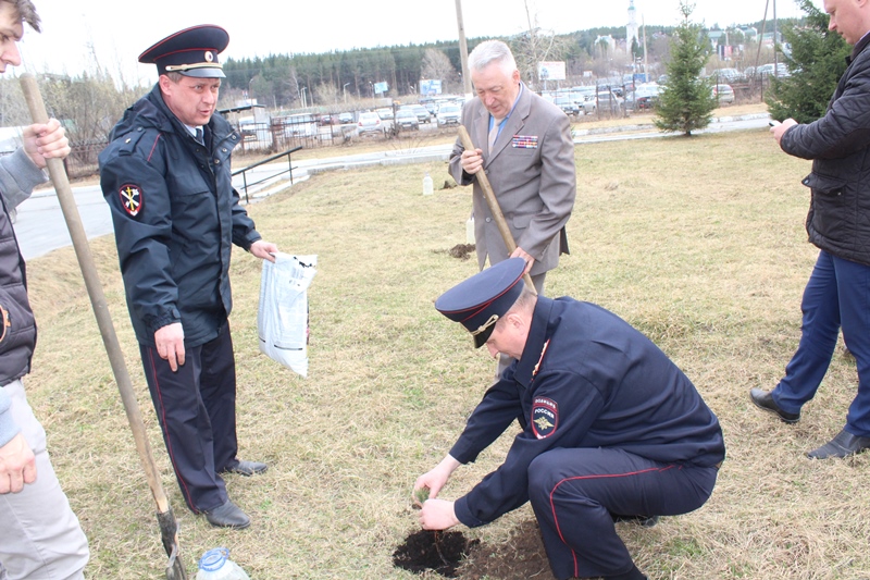 В Златоусте полицейские с ветеранами и общественниками высадили молодые деревца в накануне празднования Дня Победы
